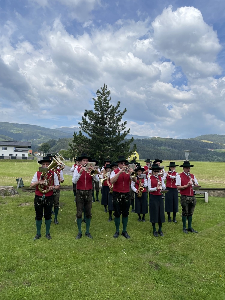 Musikalisch feierlich umrahmt wurde die heilige Messe und anschließende Prozession zum Kriegerdenkmal vom Musikverein Obdach.