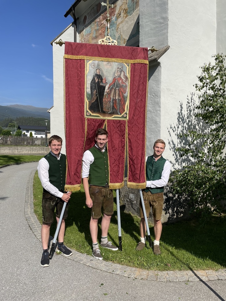 Die heurigen Erstkommunion-Kinder waren mit ihren weißen Kleidern gekommen; Die Landjugend stellte die Fahnen- und Himmelträger.