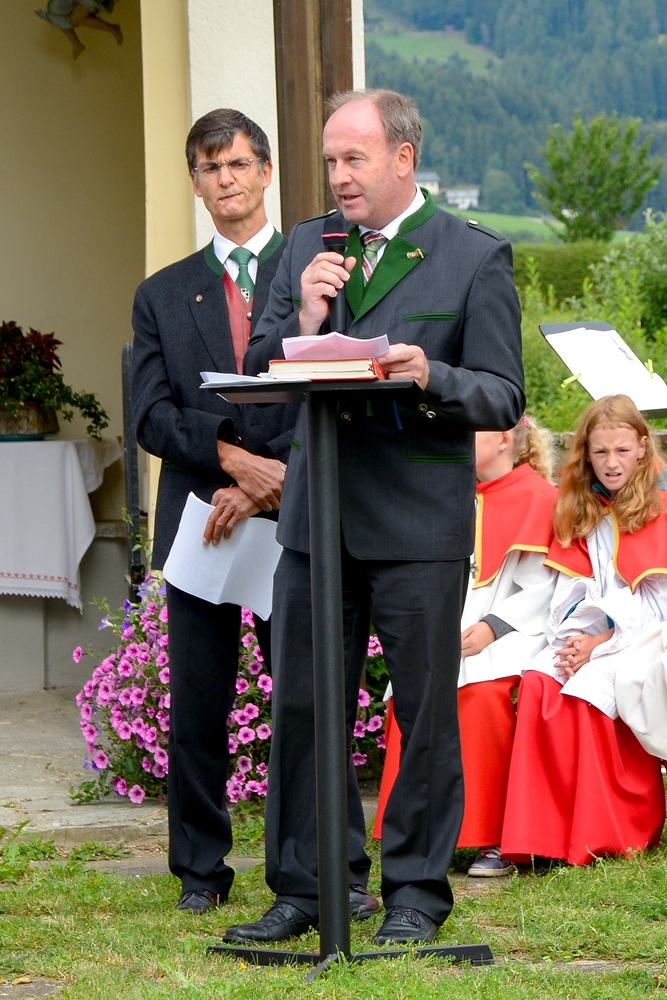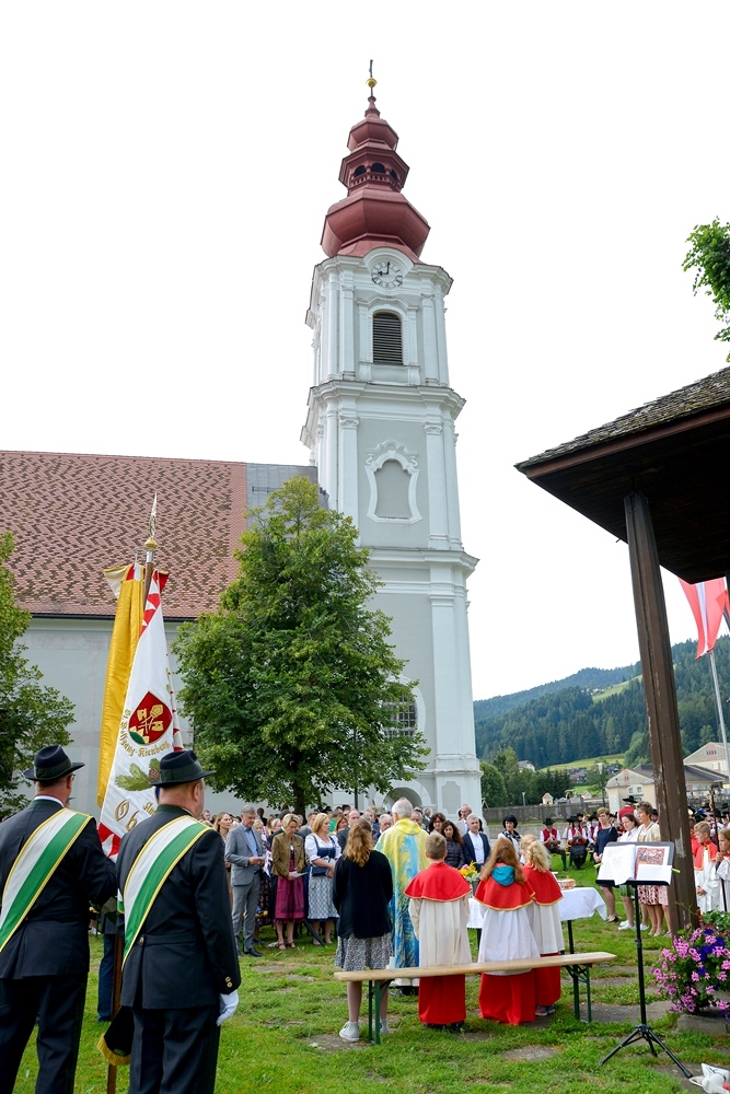 Pater Josef Altenburger sprach in seiner Predigt sehr ausführlich über die aktuelle Lage in unserer Zeit, in unseren Familien, in unserem Land, in unserer Welt. Der Kameradschaftsbund mit einigen Gastabordnungen, die Feuerwehr, das Rote Kreuz und alle Vereine des Obdacherlandes sowie die zahlreichen Gläubigen feierten diesen Gottesdienst mit Freunden aus der Partnergemeinde Kötz, einer Delegation aus Litauen und Freunden aus Italien. Musikalisch umrahmt wurde der Gottesdienst vom Musikverein Obdach.