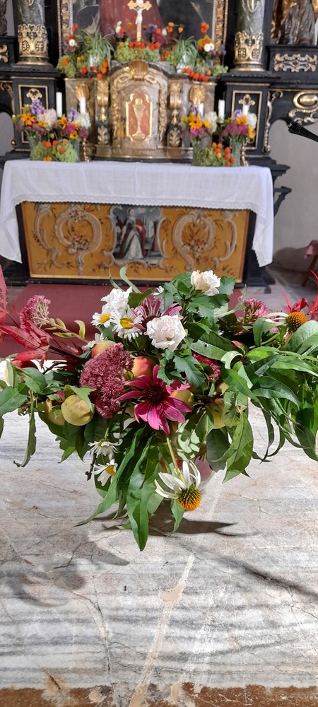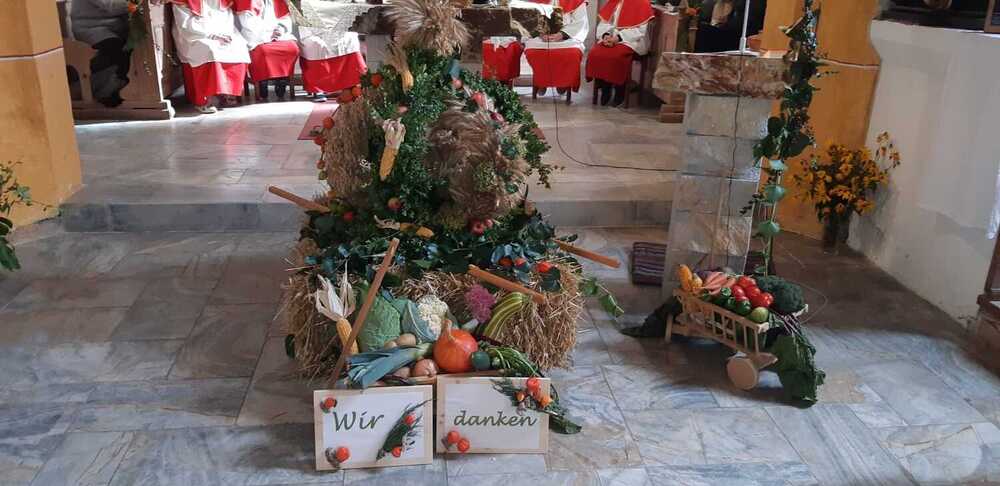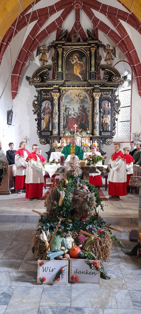 „WIR DANKEN“, heute am Sonntag, 18. September, feierte Mag. Heimo Schäfmann mit vielen „Kathalern“ und Gästen das Erntedankfest in der Filialkirche Kathal. Musikalisch umrahmt wurde der Gottesdienst vom Singkreis Wißkirchen. Ein herzliches „Vergelt´s Gott dafür. Auch allen die zum Guten Gelingen dieses Festes beigetragen haben sei ein Dankeschön ausgesprochen.