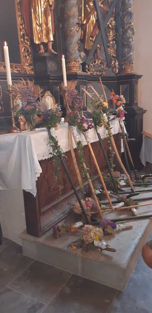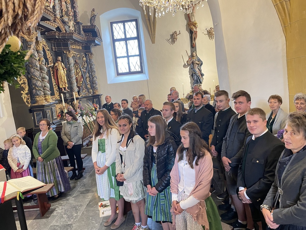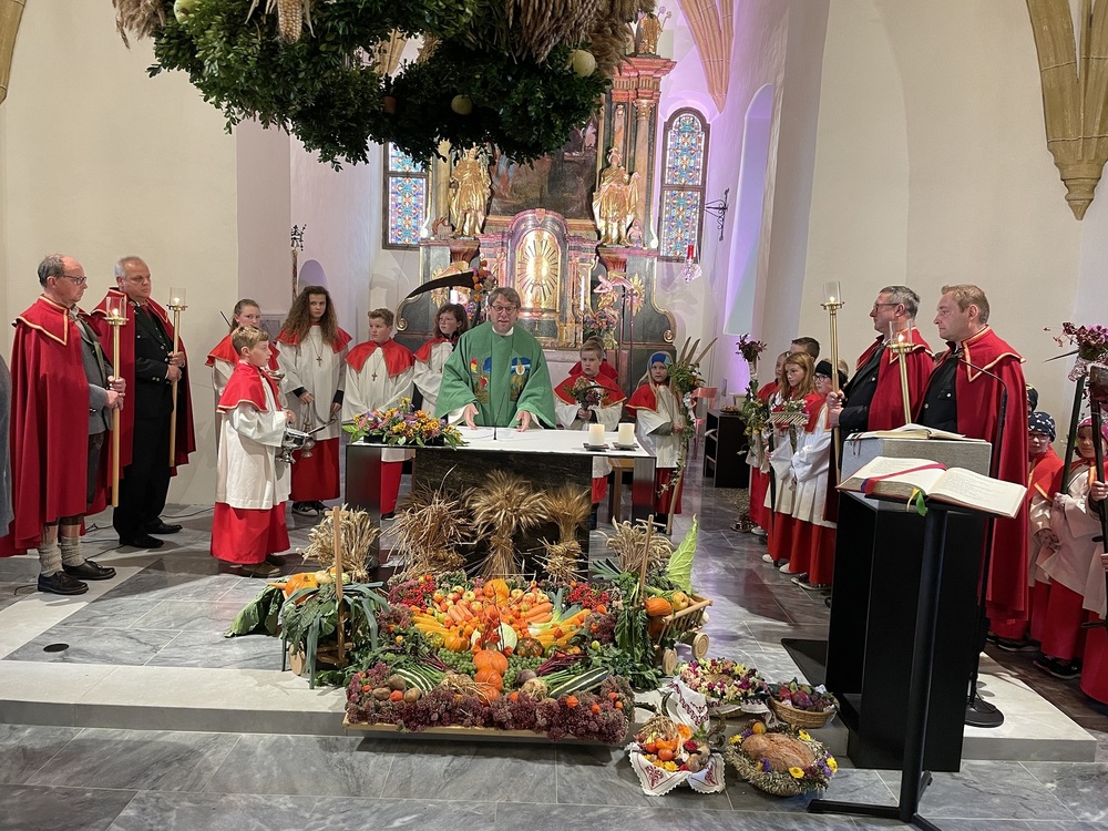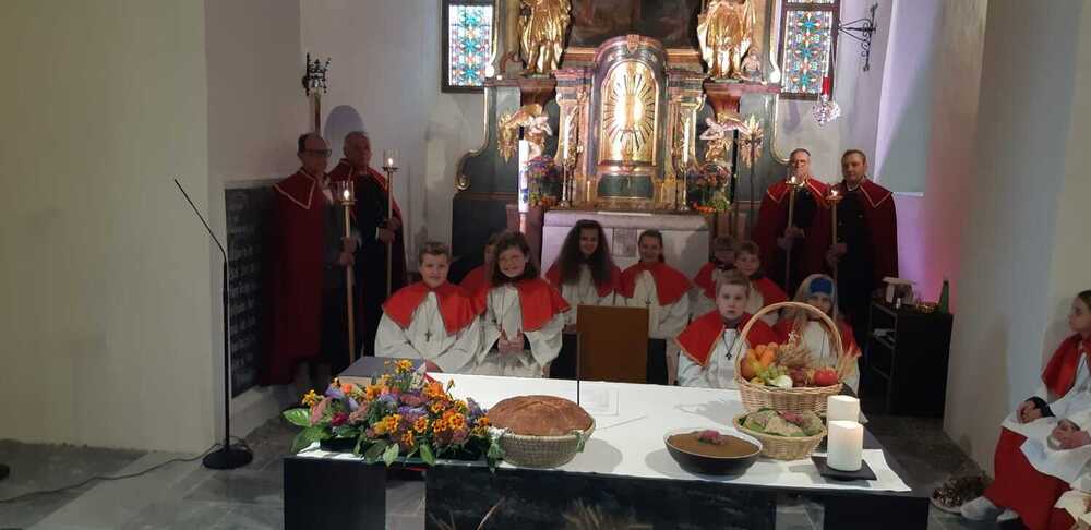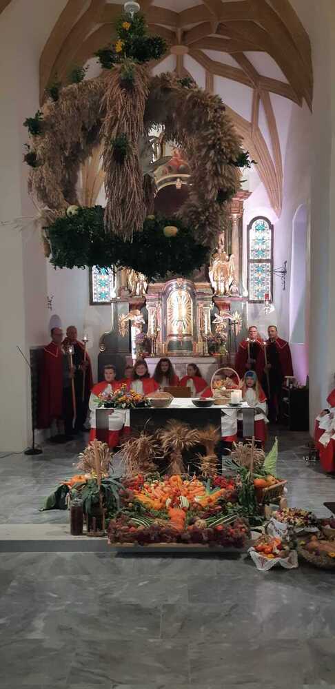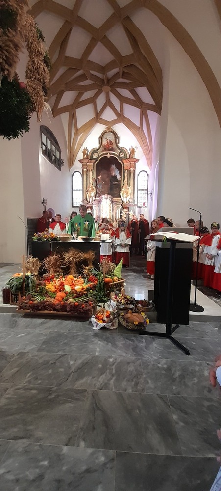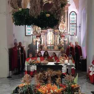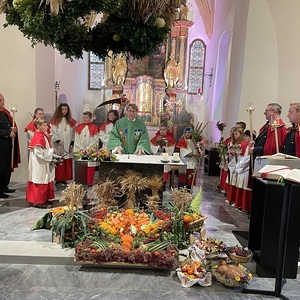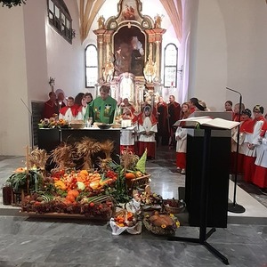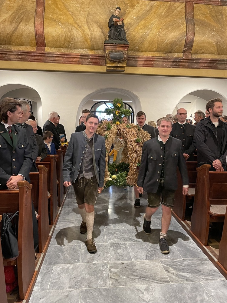 Die Landjugend hat für das Fest wieder eine wunderschöne Erntekrone gebunden, die Trachtengruppe und die Bäuerinnen zeichneten für den Kirchenschmuck und die besinnlichen Gedanken zum Jahreskreis verantwortlich.