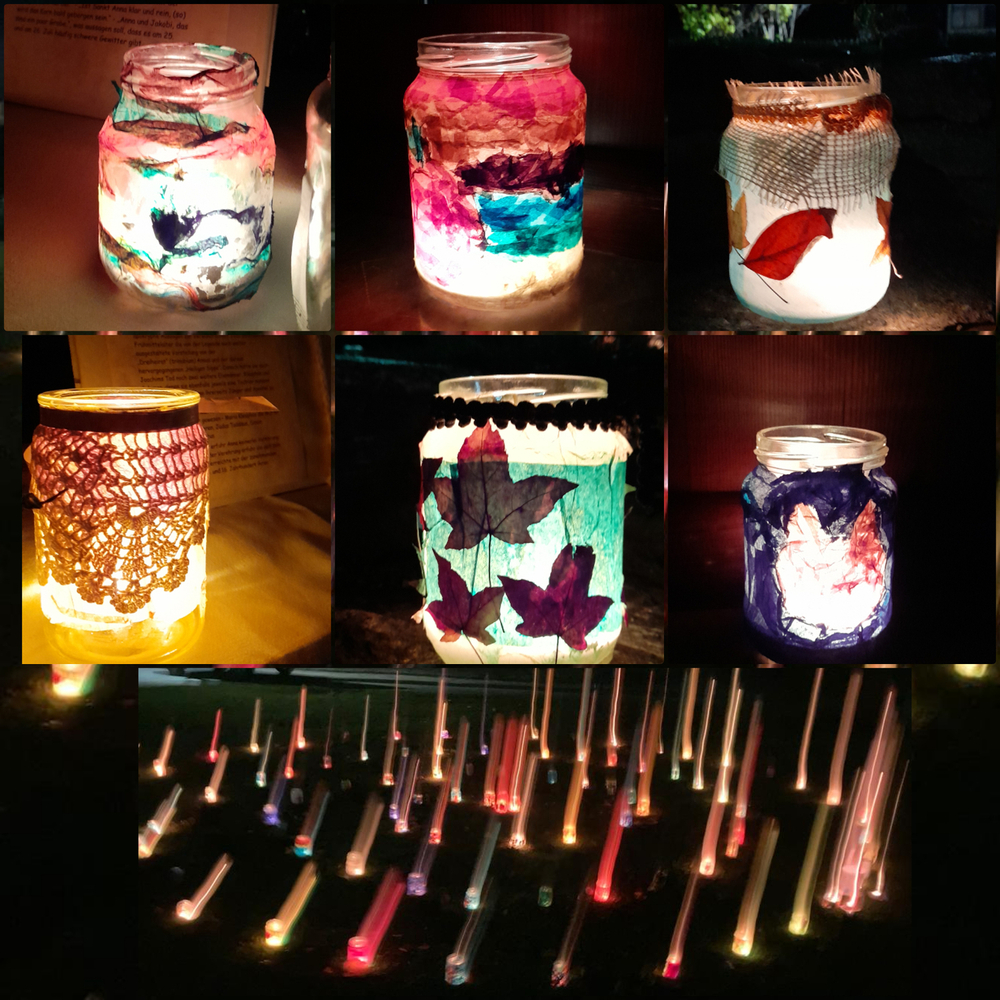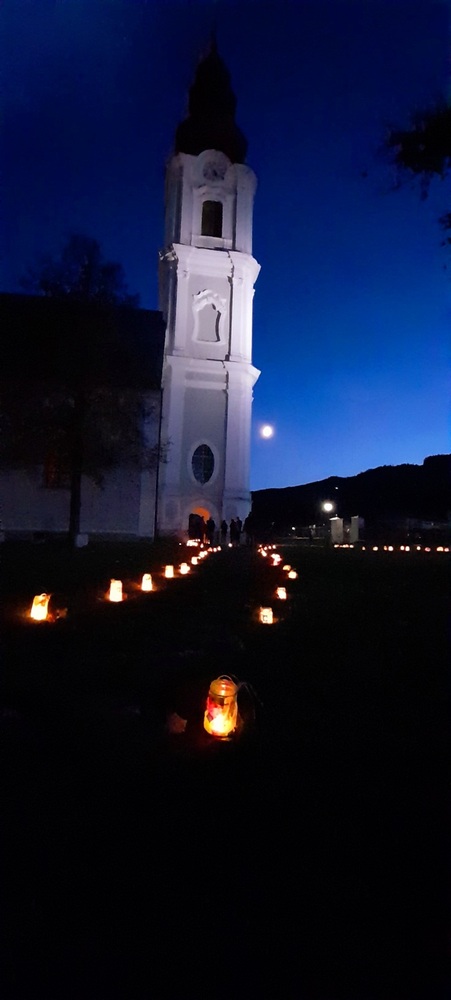 Dafür gestalteten viele Menschen aus dem Pfarrverband von ganz klein bis zu den großen Menschen der Seniorenresidenzen kreative Lichtgläser, die von vielen fleißigen Helferlein zu verschiedenen Symbolen aufgestellt und entzündet wurden. Allen sei besonders gedankt. Auch den Mitwirkenden der Andacht, den LektorInnen, dem Singkreis, der Jugend mit dem Lichtertanz sowie der Musikschule und des Firmgedächtnisses ein herzliches Vergelt's Gott.