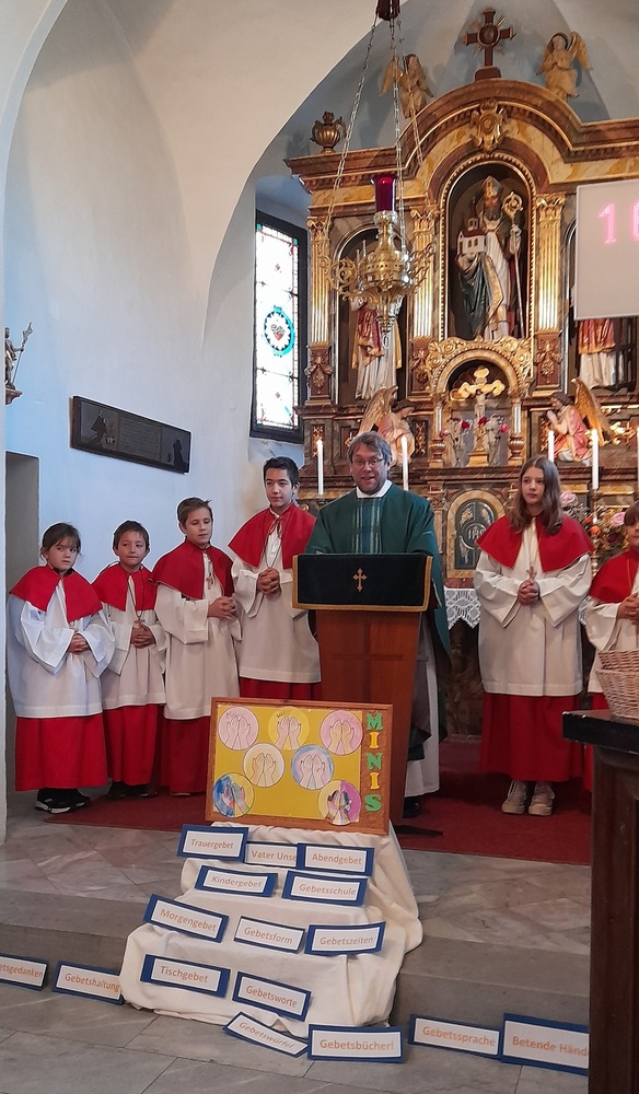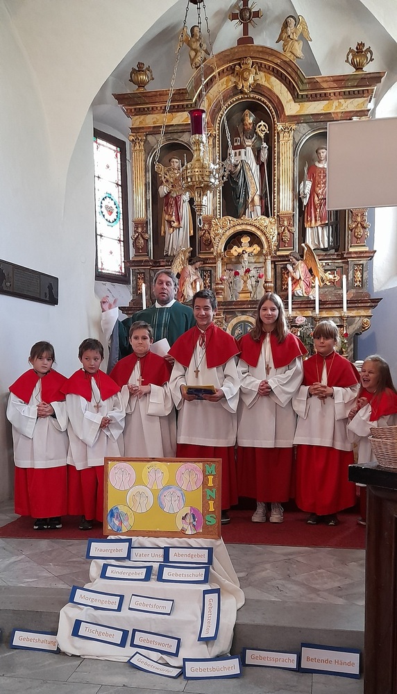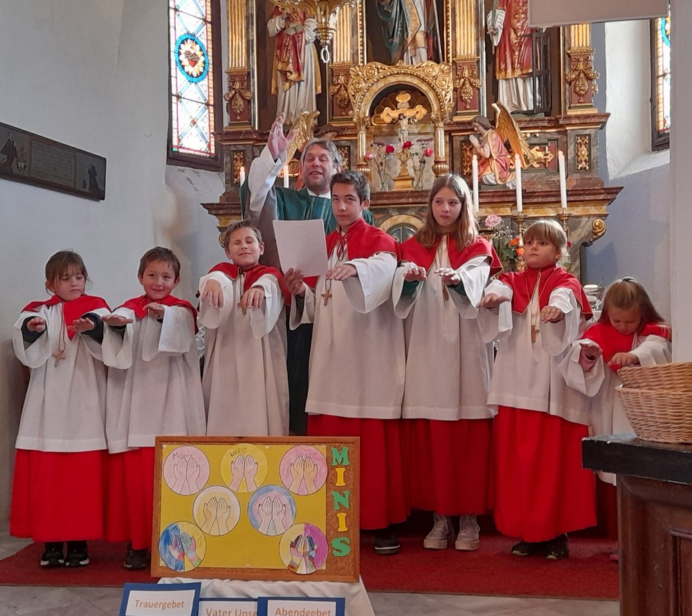 Die Minis in St. Wolfgang feierten mit Pfarrer Mag. Heimo Schäfmann ihren Ministrantengottesdienst zum Thema "VATER UNSER".