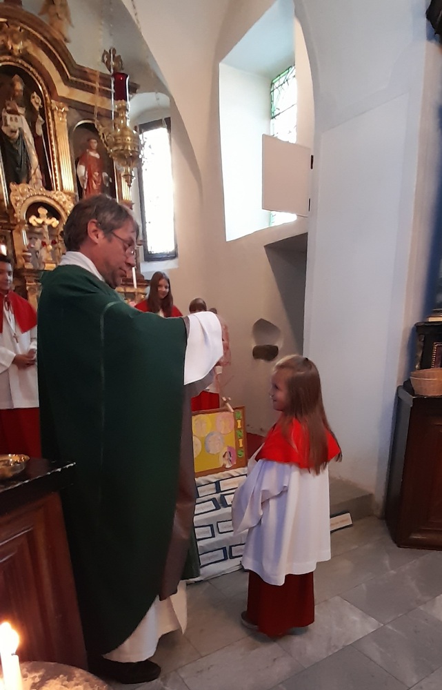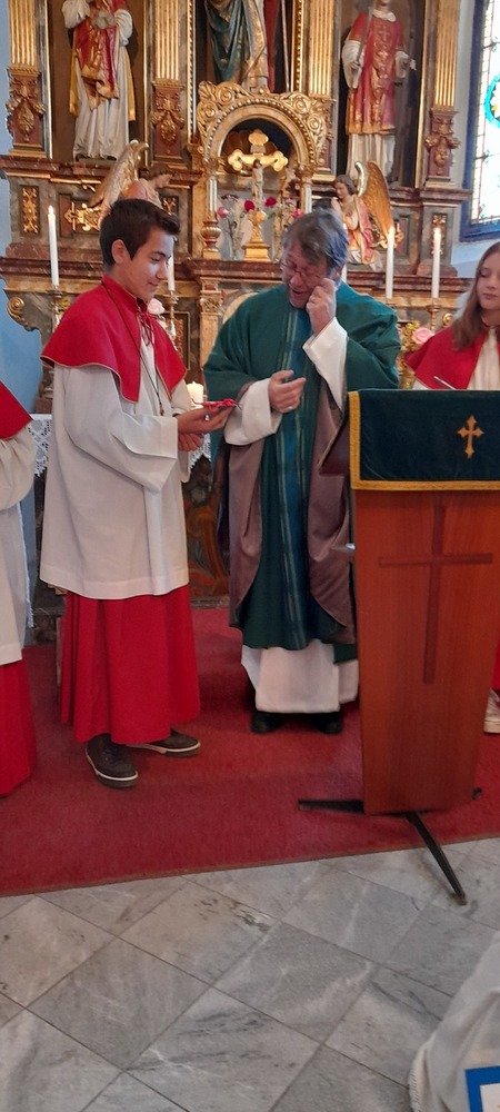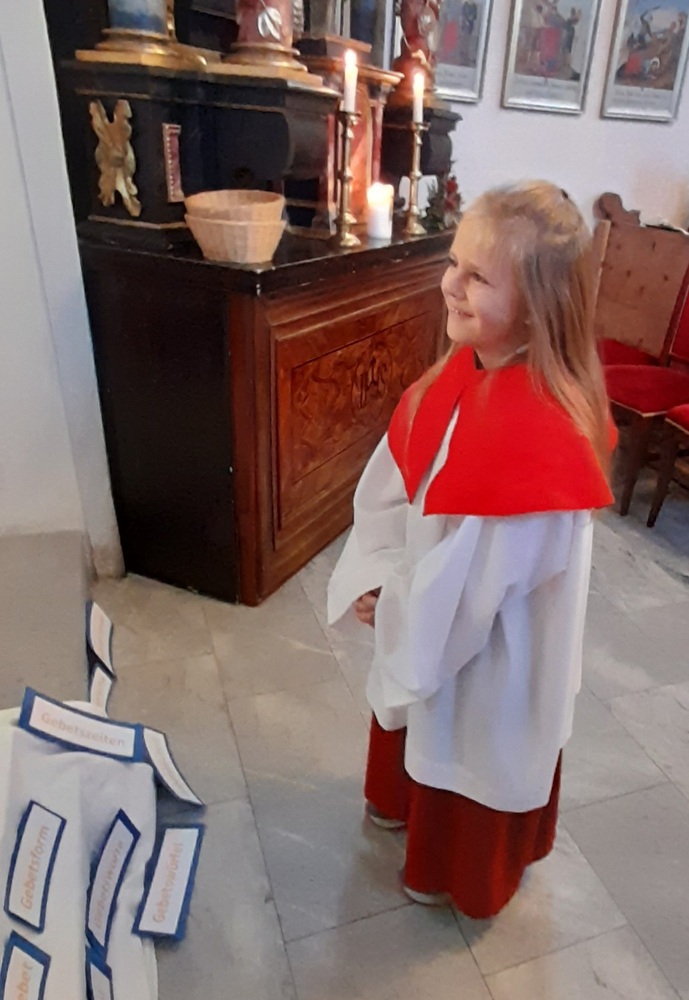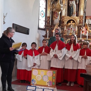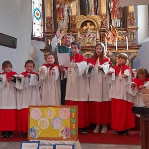 In dieser Feier wurde Jasmin mit viel Freude in die Gemeinschaft aufgenommen. Johann wurde indessen mit einem Dankeschön in die „Ministrantenpension“ geschickt. Musikalisch umrahmt wurde diese Feier von Stefanie Reiter. Ein gebührender Dank gilt auch Monika Pletz für die sorgsame Betreuung der Minis das ganze Jahr über.