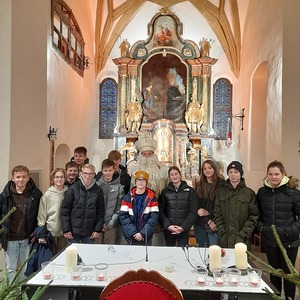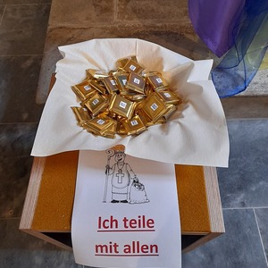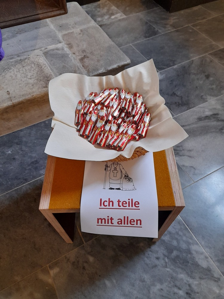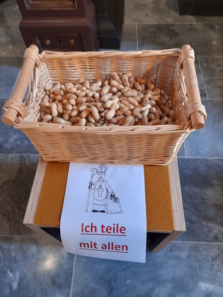 Im Anschluss gab es Körbe mit Nüssen, Äpfel und Schokolade, aus denen die Kinder etwas herausnehmen konnten. Musikalisch gestaltet wurde die Feier von "Jugendtreff".