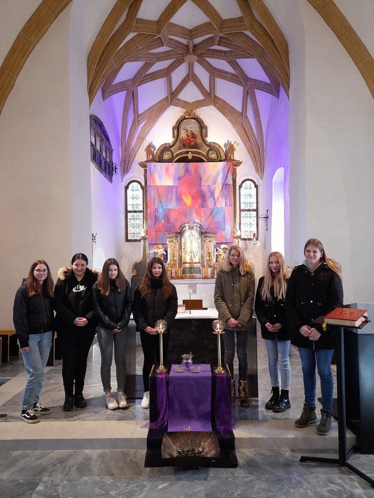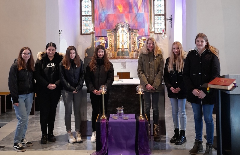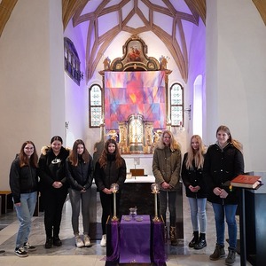 Eine Gruppe Firmlinge brachten dieses Jahr die alten Palmzweige, die Feuerschale, das Weihwasser, die Asche in einem großen Einzug feierlich zum Altar.