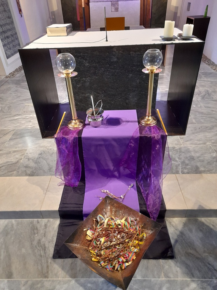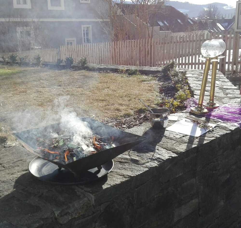 Im Gottesdienst wurde diese Asche gesegnet und den Kirchgehern mit den Worten „Bedenke Mensch, das du Staub bist und zu Staub zurückkehrst,“ auf das Haupt gelegt.