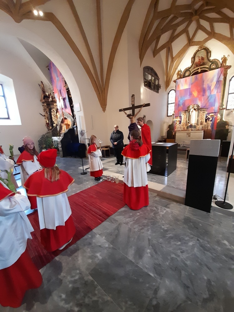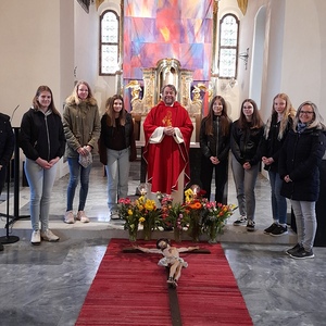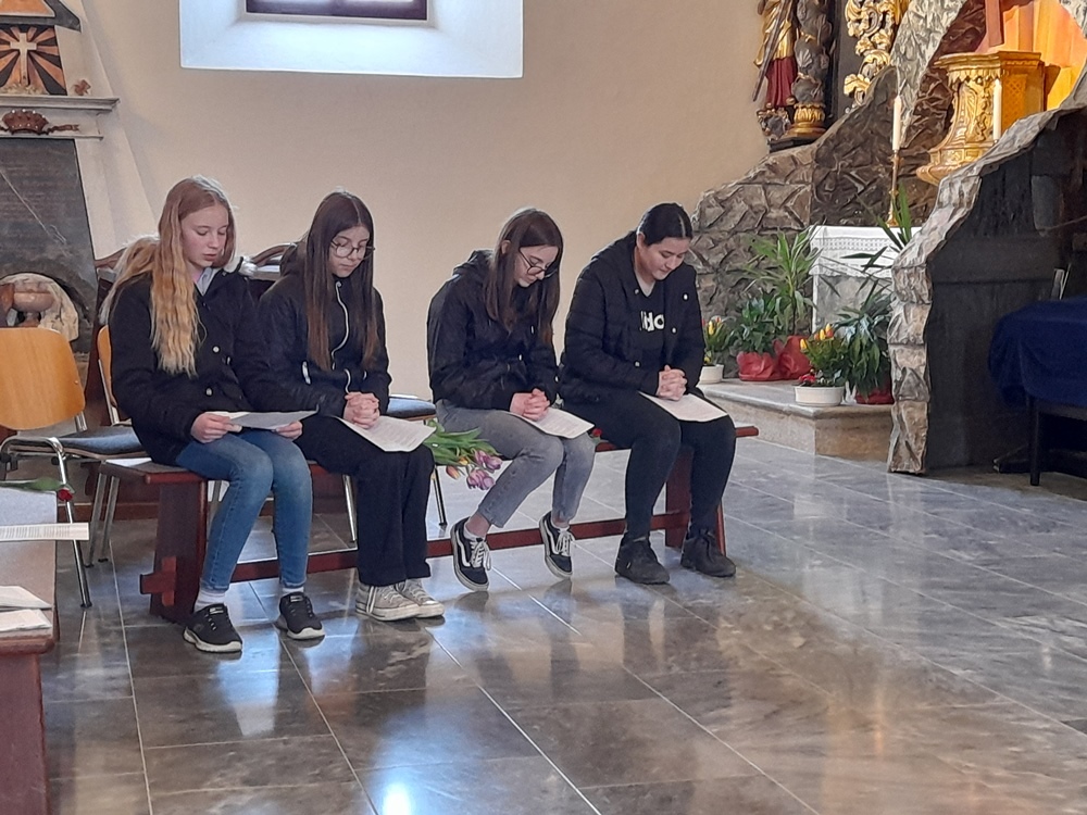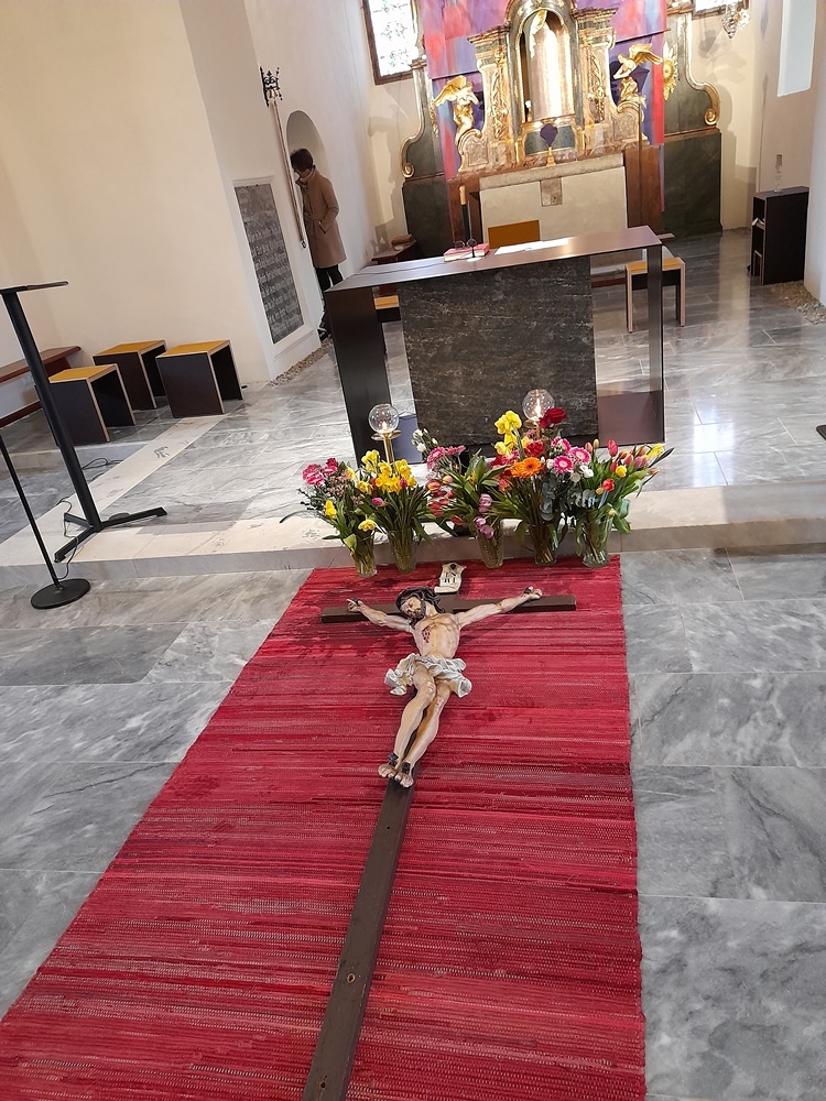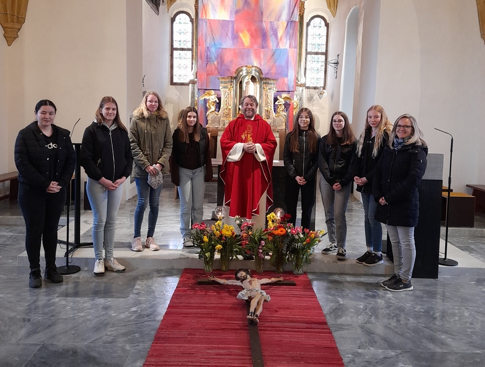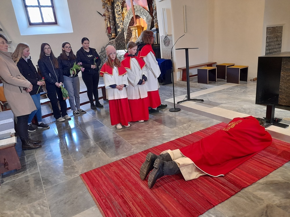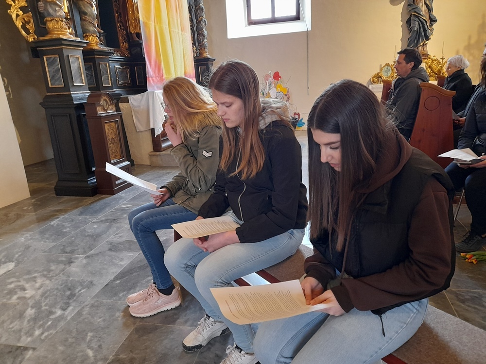 Gemeinsam mit einer Gruppe Firmlinge feierte Pfarrer Mag. Heimo Schäfmann die Karfreitagsliturgie mit Passion, großen Fürbitten, Kreuzenthüllung und Kreuzverehrung.