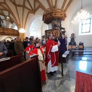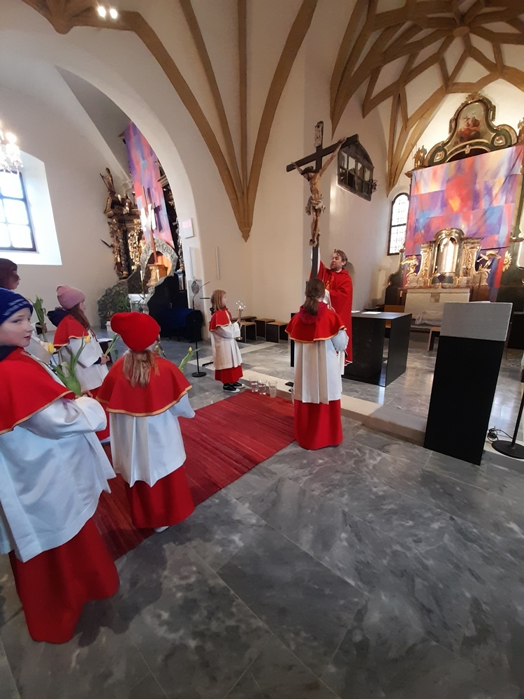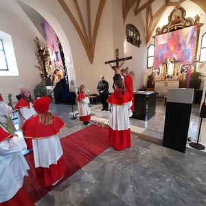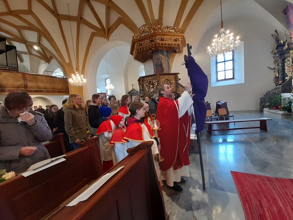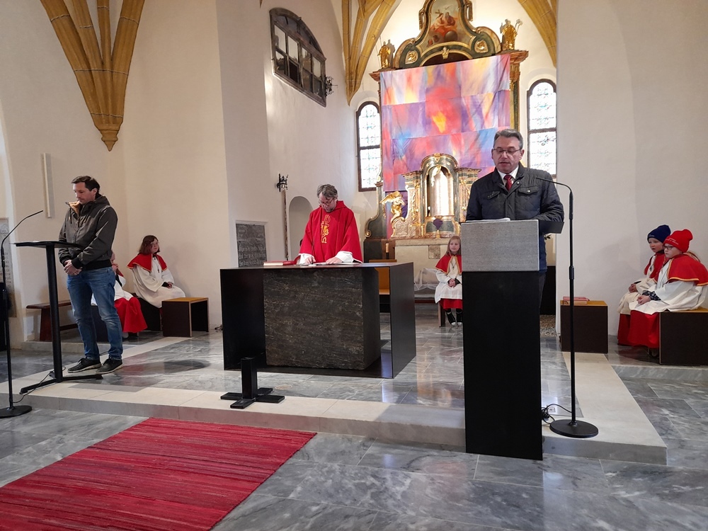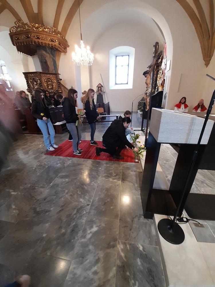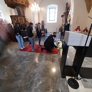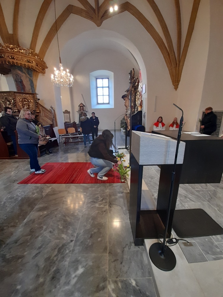 Gemeinsam mit einer Gruppe Firmlinge feierte Pfarrer Mag. Heimo Schäfmann die Karfreitagsliturgie mit Passion, großen Fürbitten, Kreuzenthüllung und Kreuzverehrung.
