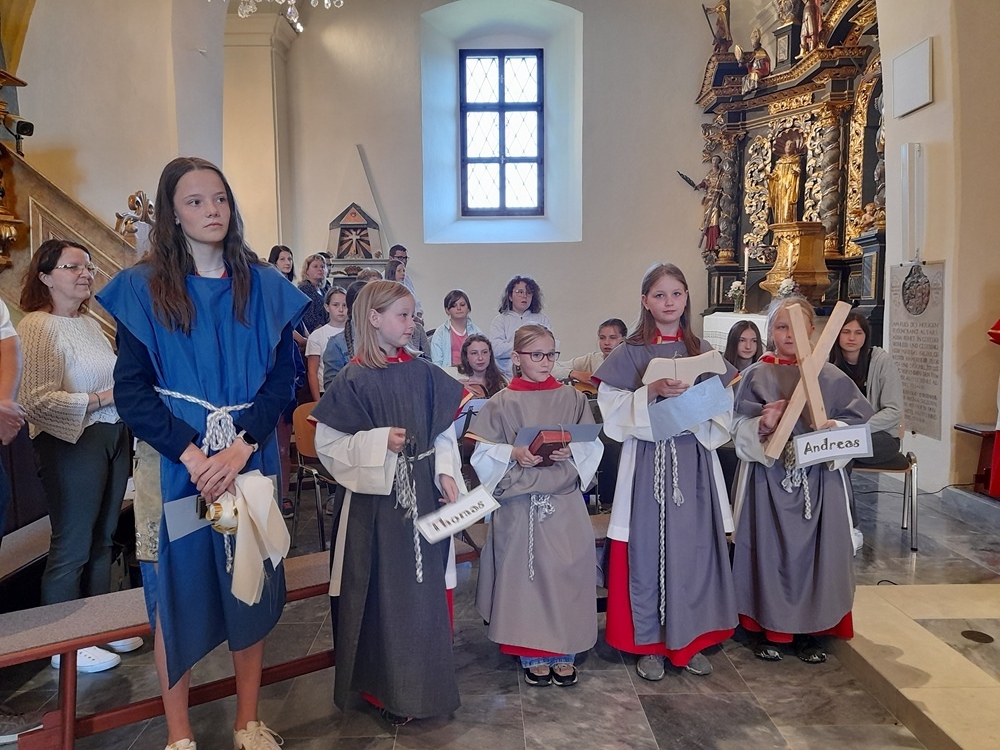 Heute feierten die Kinder-Jugendgruppen des Pfarrverbandes Obdacherland in der Pfarrkirche Obdach ihren Abschlussgottesdienst für ein erfolgreiches buntes Jahr. Zum Evangelium des Tages passend wurde von den Kindern der Jungschar und Ministranten diese zwölf Apostel mit ihren Attributen in einem Evangeliumspiel dargestellt.