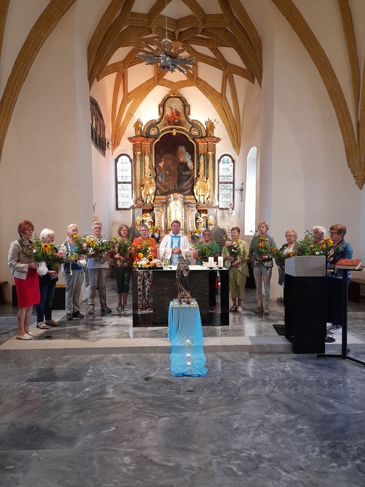 Heute besuchten ca. 90 Frauen der KFB des Seelsorgeraumes Hartberg die Pfarre Obdach zu einem Gottesdienst und gemeinsamen Austausch. Im Anschluss an den von Pfarrer Mag. Heimo Schäfmann zelebrierten Gottesdienst mit Segen für die Frauen trafen sich alle zu Kaffee und hervorragenden Mehlspeisen im Pfarrhof.