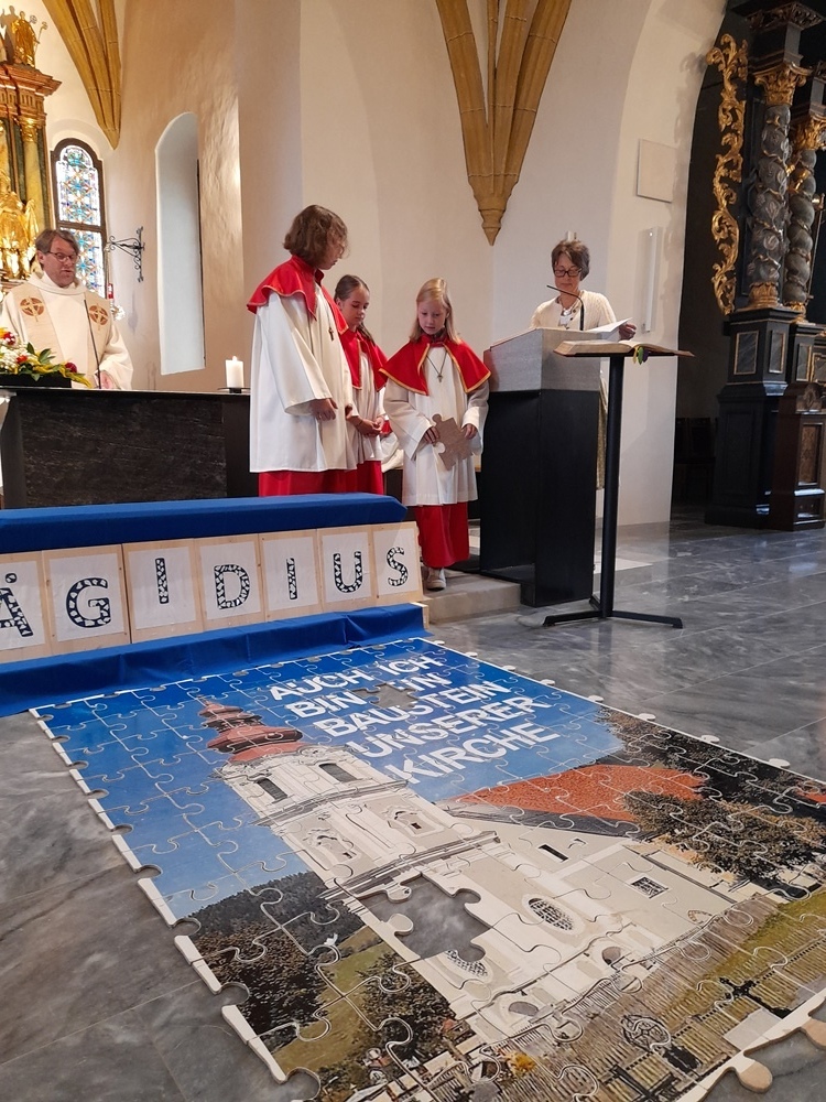 Dieser Festtag wurde heute in Obdach gefeiert. Zum Einstieg hörten wir vom Leben und Wirken des Hl. Ägidius. In der Predigt wies Pfarrer Mag. Heimo Schäfmann auf die Wichtigkeit jedes einzelnen Pfarrmitgliedes hin, es greift wie ein Puzzleteilineinander und kann nur miteinander ein Ganzes Großes werden und wirken. Das Puzzle vor dem Altar wurde von den Minis zusammengebaut. Musikalisch wurde das Hochamt vom Kirchenchor gestaltet.
