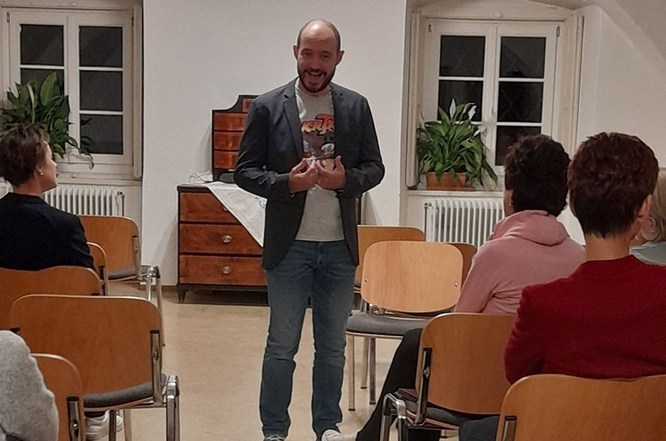 Theologe, Pastoralreferent, Mentaltrainer Josef „Seppi“ Promitzer sorgte im Rahmen einer Veranstaltung des Katholischen Bildungswerkes der Diözese Graz-Seckau heute im Pfarrhof Obdach für viel Humor und lautes Lachen.