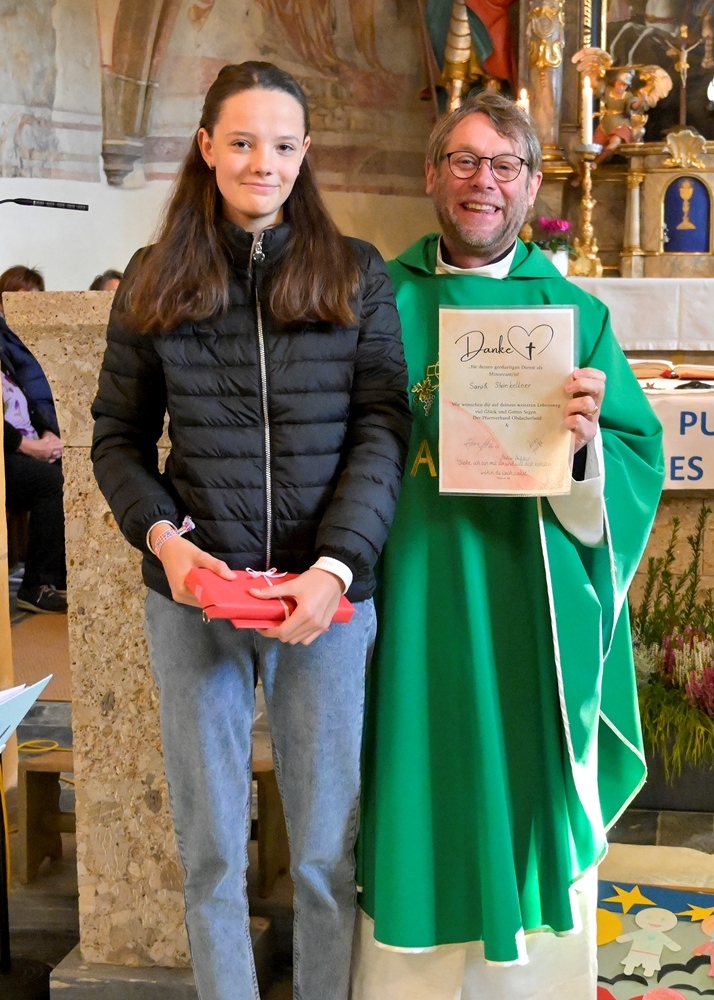 Neu in der Minitruppen durften Lara und Sophie Pletz begrüßt werden. Die beiden Minis Lea Greimel und Marie Steinkellner wurden zu „Maxistranten“ befördert und leider musste ein Ministrant verabschiedet werden. Liebe Sarah Steinkellner - vielen Dank für deine jahrelange Tätigkeit. Die musikalische Umrahmung übernahm Getraud Bischof an der Orgel und die beiden Mädls Sarah Steinkellner und Sophie Naschberger mit Gitarre und Gesang.