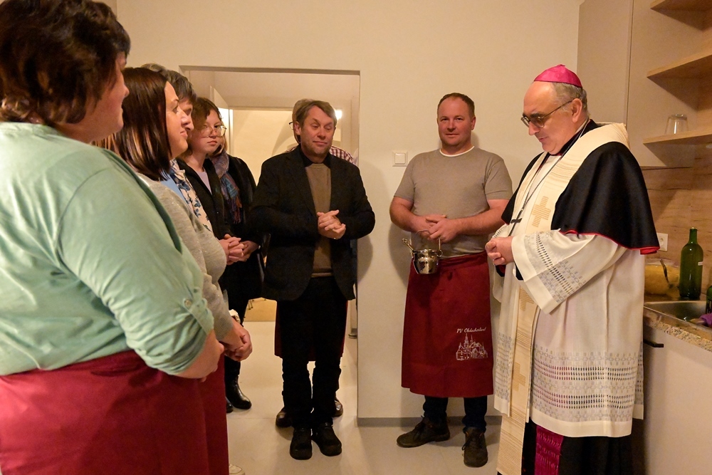 Bischof Dr. Wilhelm Krautwaschl segnete die neue Küche im Rahmen des MitarbeiterInnenfestes und wünschte für die getane Arbeit alles Gute.