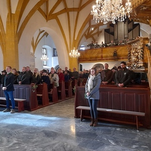 Anschließend segnete Pfarrer Sattler die Strecke, die am Kirchplatz vorbereitet war.
