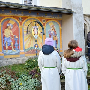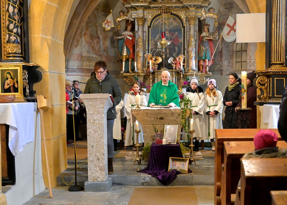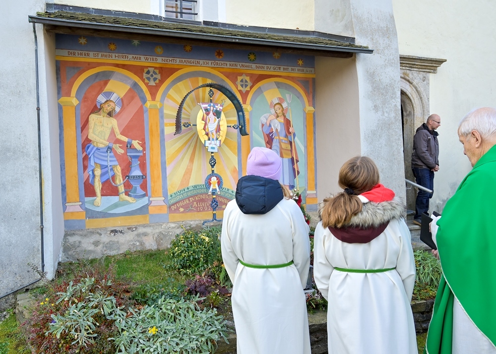 Mit einer vollen Kirche wurde heute in St. Georgen dem verstorbenen Pfarrer Heinrich Dalla Rosa gedacht. Er war zu seiner Zeit ein sehr volksnaher Pfarrer, der viele Kontakte mit den Familien in St. Georgen pflegte. Unter anderem unterrichtete er die Kinder in der Kirche und sang mit ihnen Lieder. Doch nahm er sich auch kein Blatt vor den Mund, was ihm leider zum Verhängnis wurde. Durch sein Auflehnen gegen das Hitlerregime wurde er 1944 zum Tode verurteilt und am 24.1.1945 enthauptet. Bis zu Schluss war sein Glaube unerschütterlich, und dies wollen wir weitertragen. 1946 wurde er in St. Georgen begraben.
