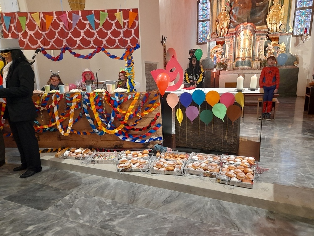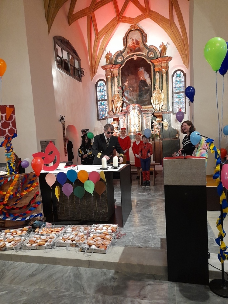 Der knallrote Luftballon, dieser, spielte in der Predigtgeschichte die Hauptrolle. Der Kapitän mit seinen Stuartessen sorgten für den geordneten Flug. Musikalisch gestaltet wurde der Gottesdienst von der Gruppe Jugendtreff gemeinsam mit dem Singkreis Obdach. Dieser Erlebnisgottesdienst klang bei Krapfen und Kaffee aus. Ein herzliches Vergelt's Gott für die vielen fleißigen Hände, die in irgendeiner Weise mitgeholfen haben.