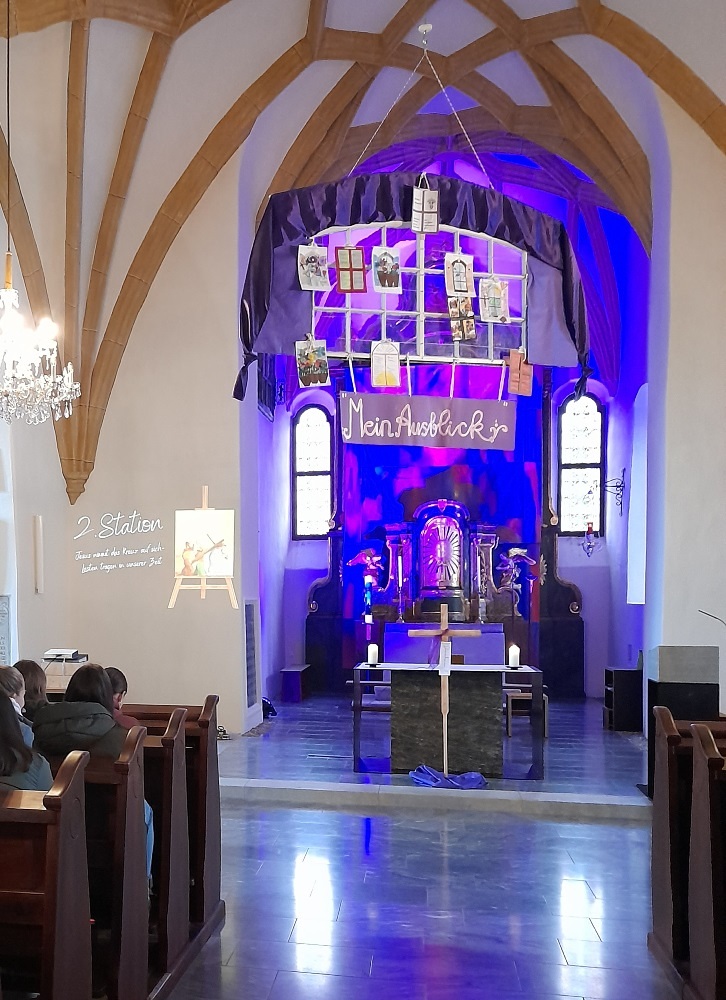 Aufgrund der Wetterlage begleiteten die Firmlinge mit ihren PatInnen in der Obdacher Pfarrkirche den letzten Weg von Jesus und durften in diesen mit Fragen und Antworten der heutigen Zeit eintauchen und sich damit auseinandersetzen.