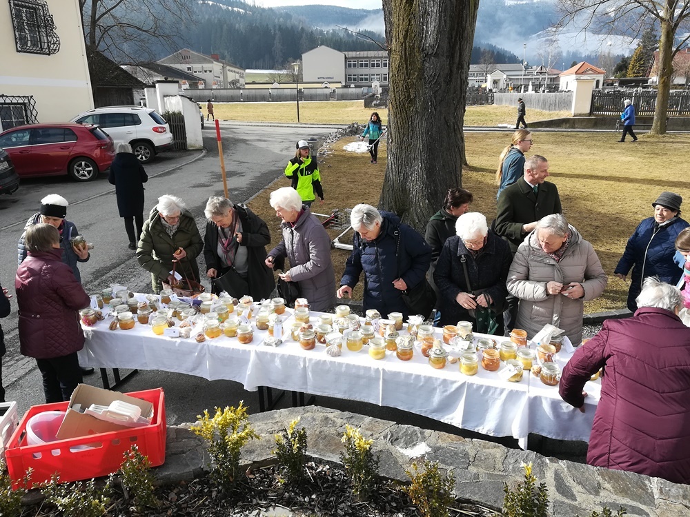 9 verschiedene köstliche Suppen - abgefüllt in Gläser und liebevoll dekoriert - wurden am Sonntag den Gottesdienstbesuchern nach der Messe in der Pfarrkirche Obdach zum Mitnehmen angeboten.