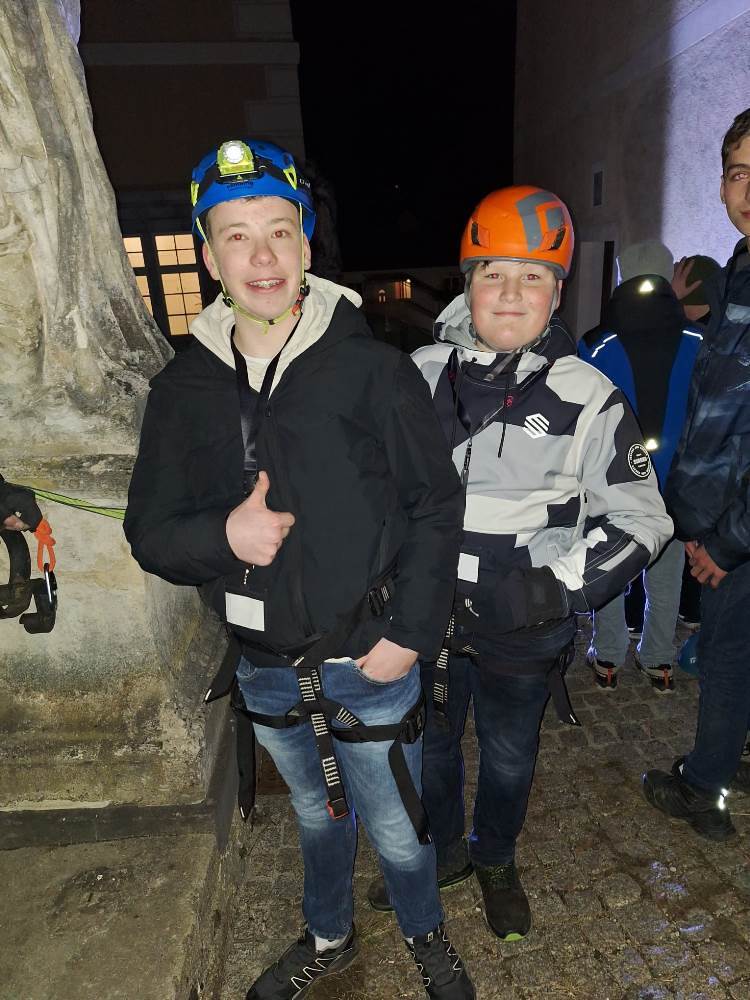 Beim “unsichtbaren Labyrinth” zählte Teamwork und in der “Nightline” ging es mit verbundenen Augen und Selbstbewusstsein einem Seil entlang. Weiters durften die Firmlinge dem Bekannten Inkonenmaler em. Abt Otto Strohmaier über die Schulter schauen.