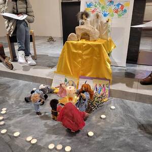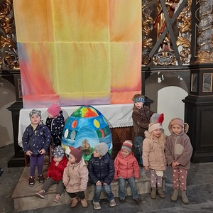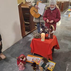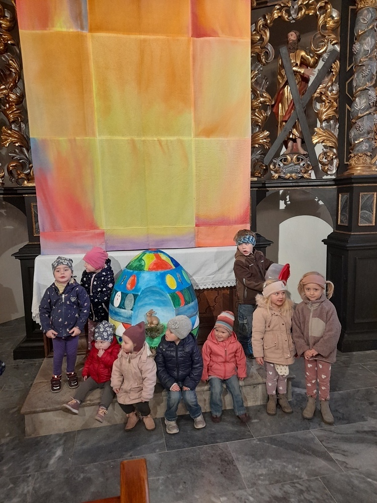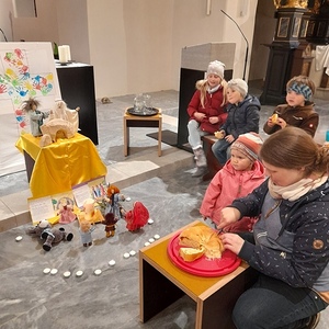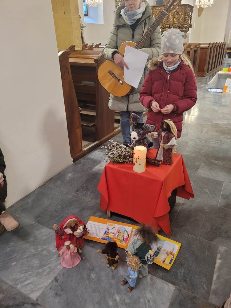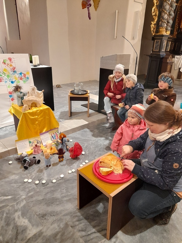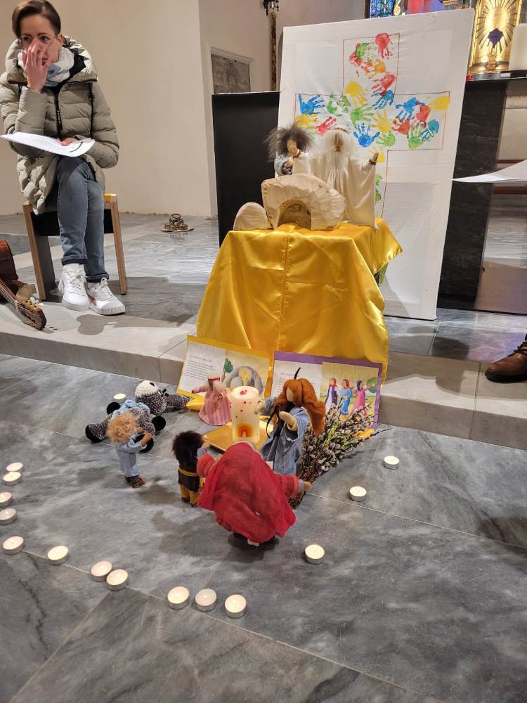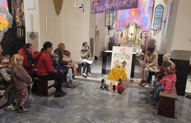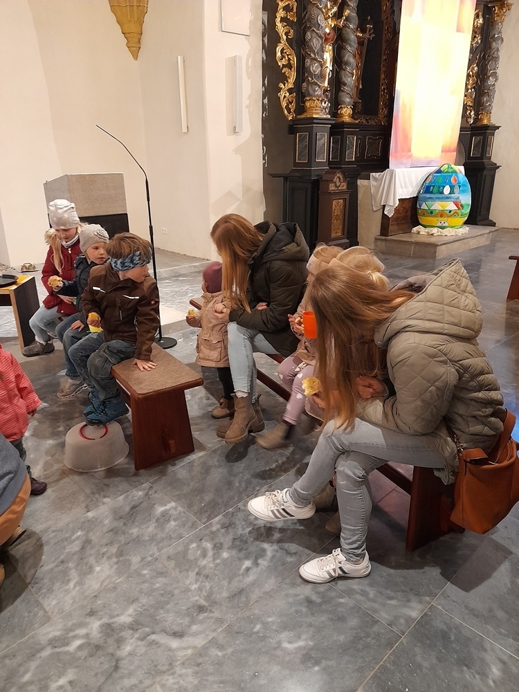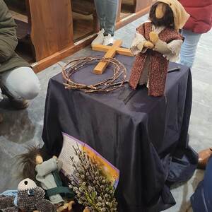 Mit Jesus auf dem Weg. Die Kleinsten unseres Pfarrverbandes konnten am Mittwoch in der Karwoche die Ostergeschichte in vier Stationen mit den Biblischen Figuren miterleben und mitgestalten.