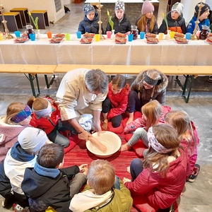 Viele Kinder folgten der Einladung und feierten mit. Die Erstkommunionkinder waren dabei zur Fußwaschung sowie zum Tisch des letzten Abendmahls geladen wo es im Anschluss Traubensaft für alle Kinder gab und ein Brot zum Teilen mit der Familie.