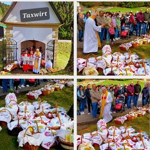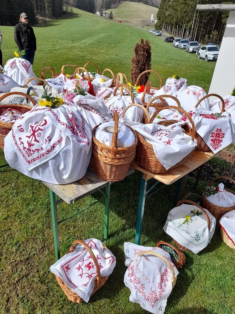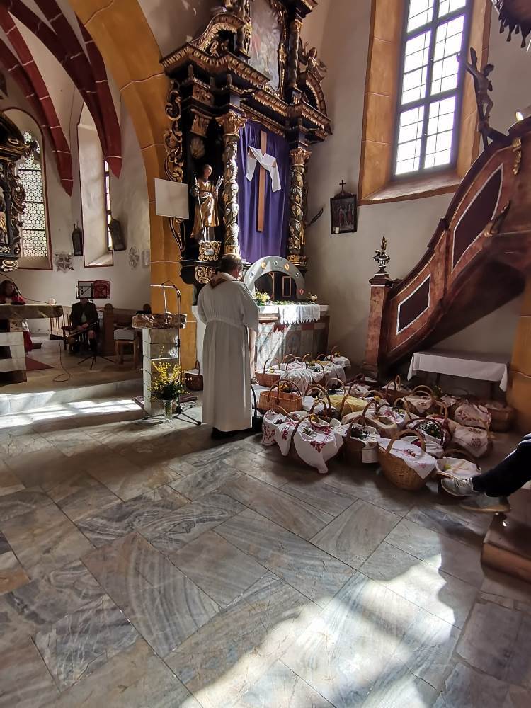 In allen Kirchen, sowie bei einigen Hauskapellen wurden die festlich geschmückten Körbe durch Pfarrer Mag.Heimo Schäfmann, Pfarrer Ferdinand Sattler und drei WortgottesfeierleiterInnen gesegnet.Das liebevoll 8. Sakrament genannte Fest ist wohl die Feier der Osterspeisensegnung.