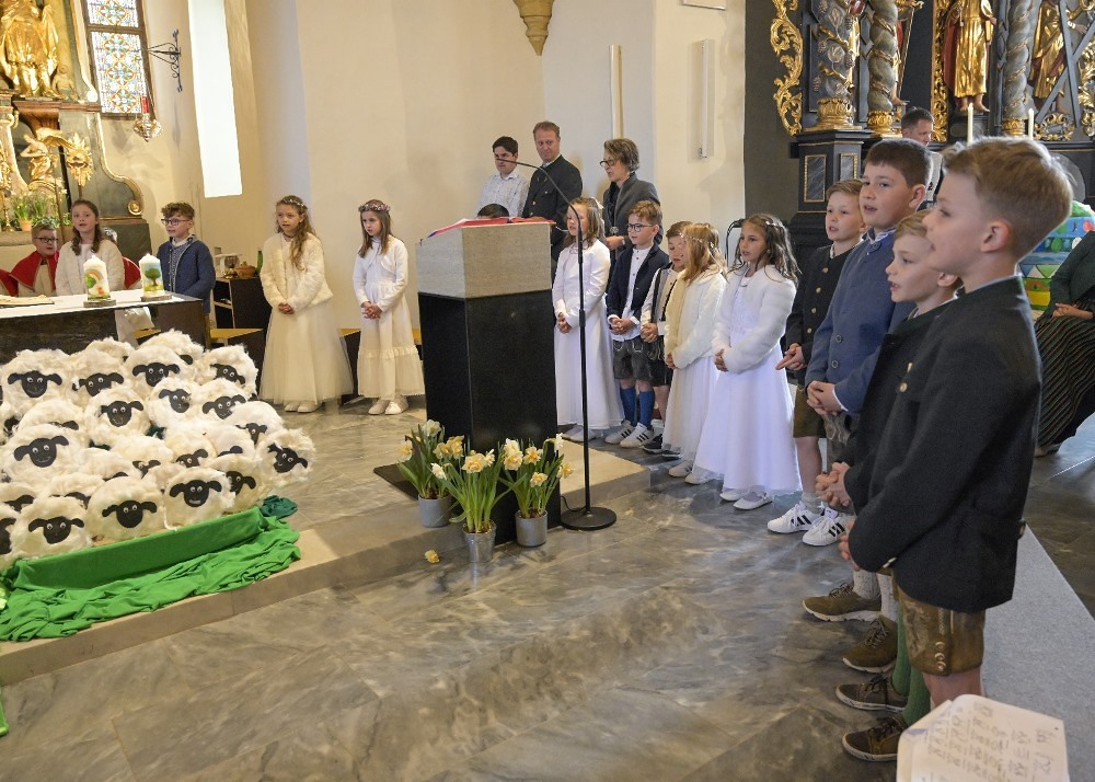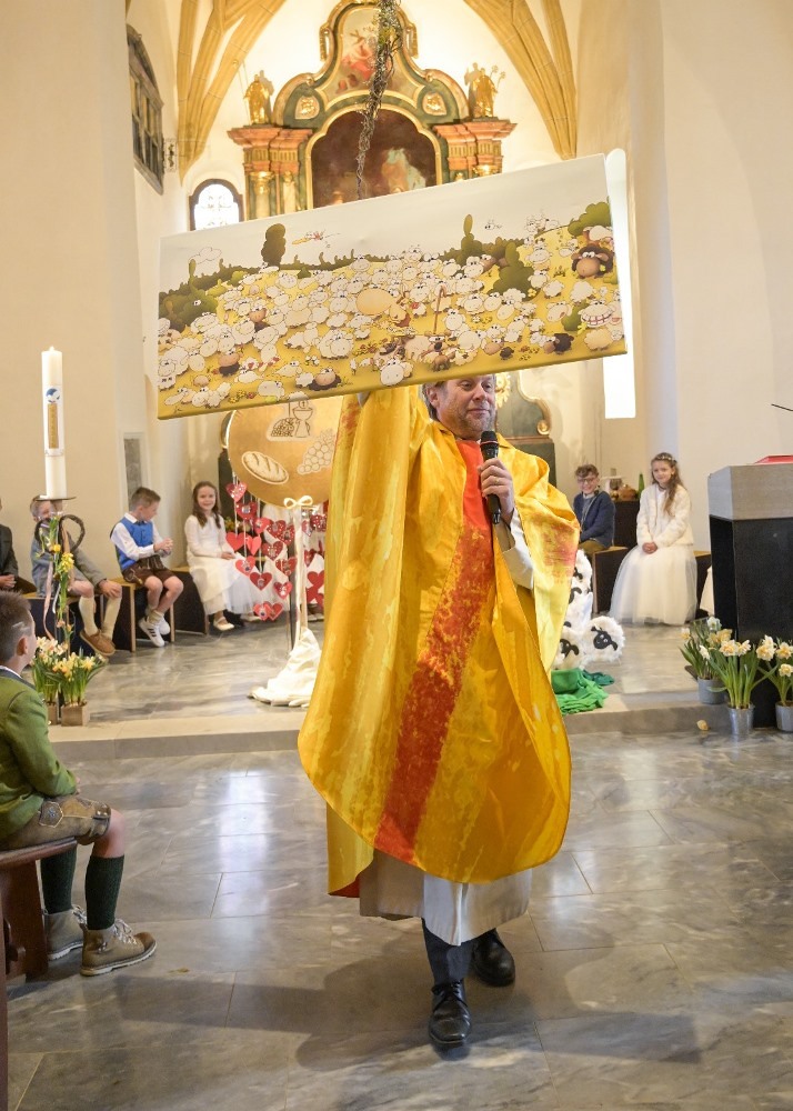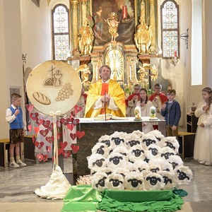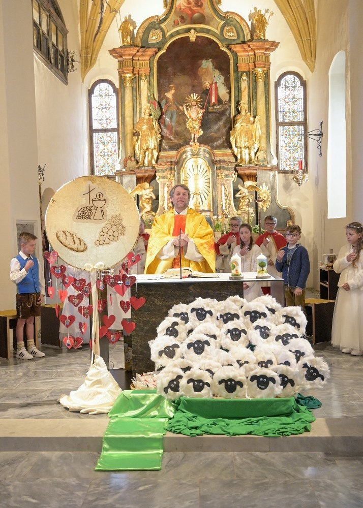 Heute feierten dreißig Kinder in der Obdacher Pfarrkirche mit Pfarrer Mag. Heimo Schäfmann ihr Sakrament der Erstkommunion. Mit "Der Herr ist mein Hirte" gestalteten die Kinder selbst in den Texten und Liedern mit Hilfe ihrer PädagogInnen dieses Fest.
