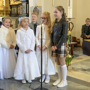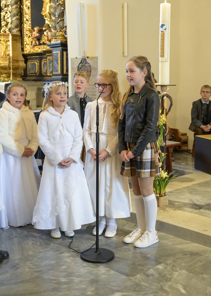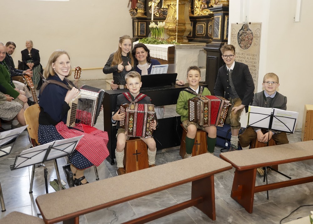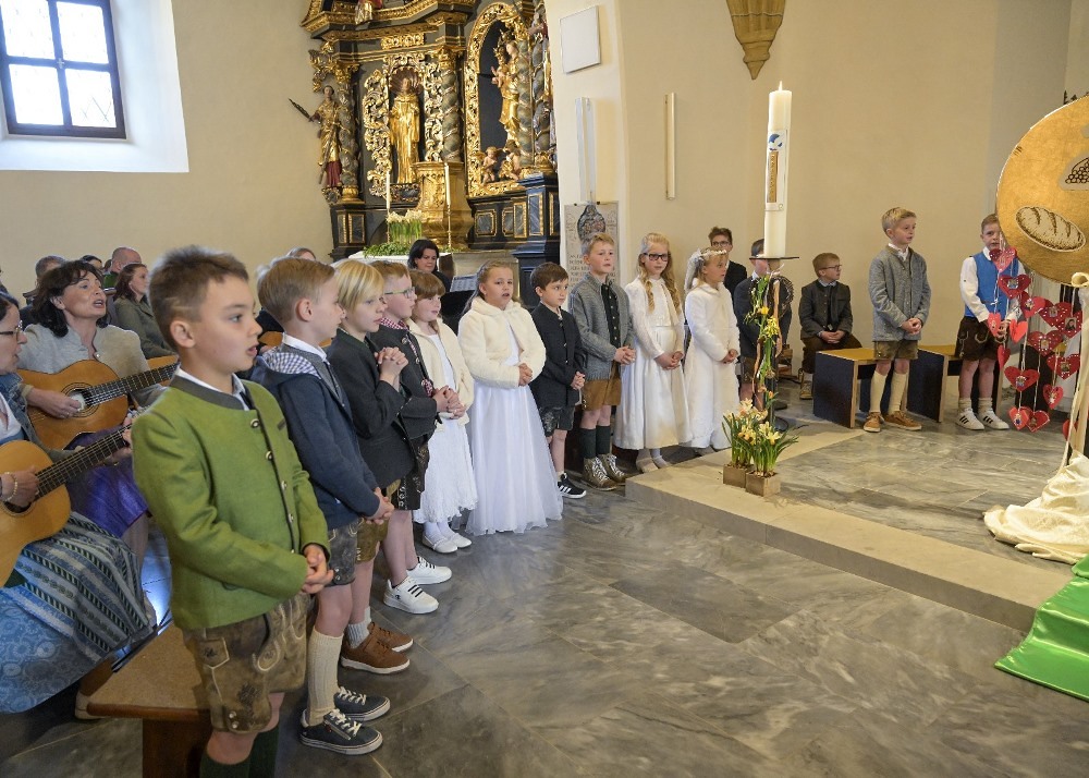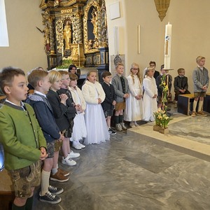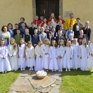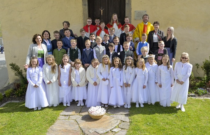 Instrumentale unterstützt wurden sie von Hannelore, Simone, Matthias, David und Valentina. Ein herzliches Vergelt's Gott allen, die zum Gelingen dieses Festes beigetragen haben. Für den Blumenschmuck und die anschließende Agape den Eltern ein besonderes Vergelt's Gott.