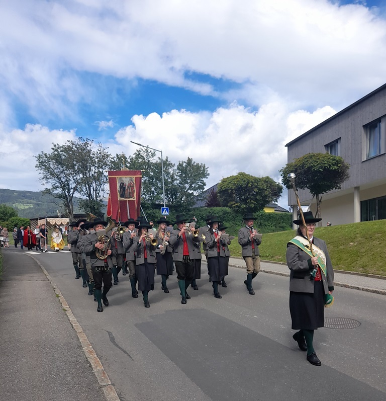 Begleitet wurde die Messe und der Umzug vom Musikverein Obdach, die Landjugend stelle die Fahnenträger und auch zahlreiche Erstkommunion-Kinder waren dabei.