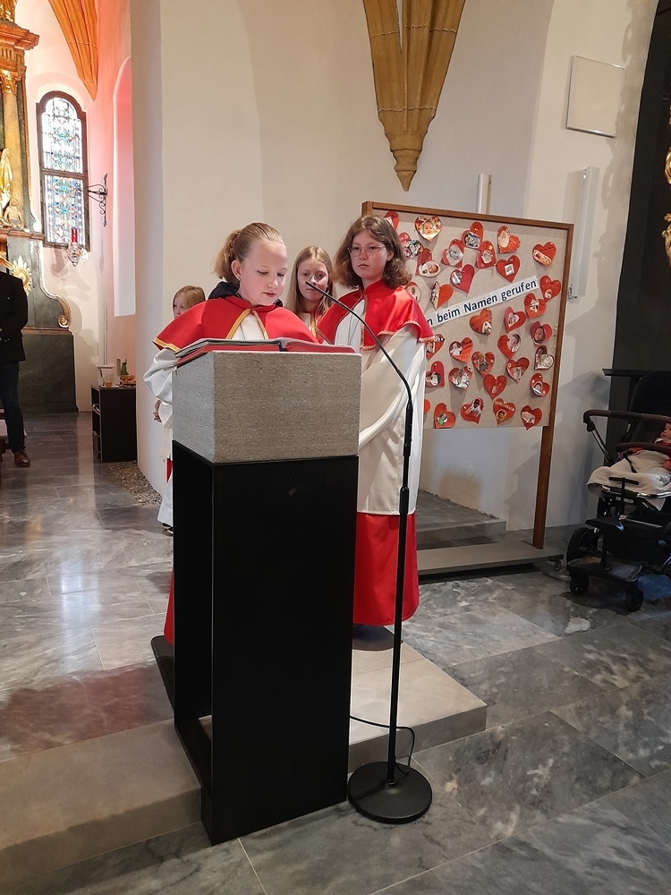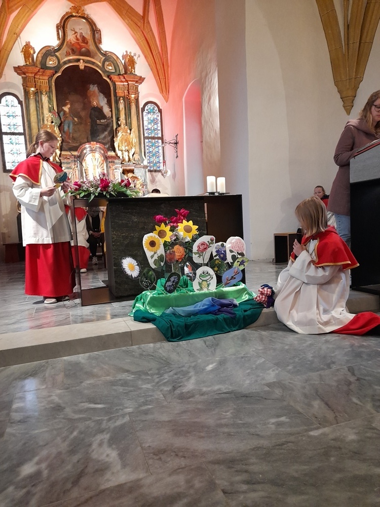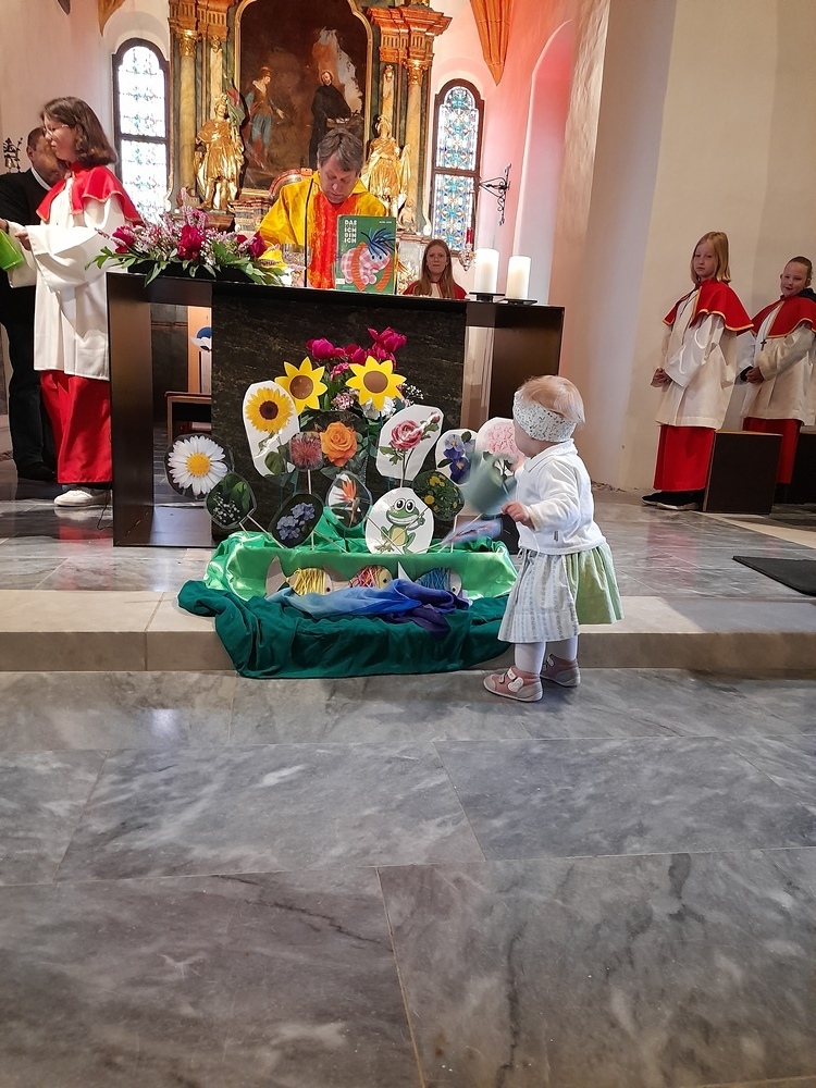Im Anschluss an den Segen durfte jedes Taufkind ein kleines "Ich bin Ich" als Erinnerungsgeschenk mit nach Hause nehmen. Liebevoll vorbereitet von Johanna Feßl.