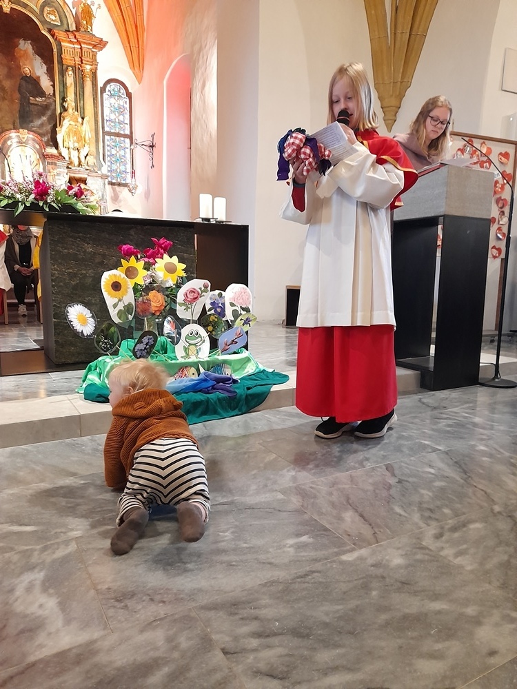 Nach der Geschichte vom kleinen "Ich bin Ich", gespielt von den Minis, stellte Herr Pfarrer in der Predigt die Frage "Wer bin ich wirklich?".