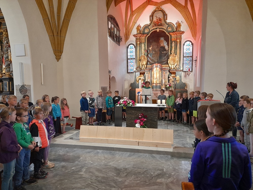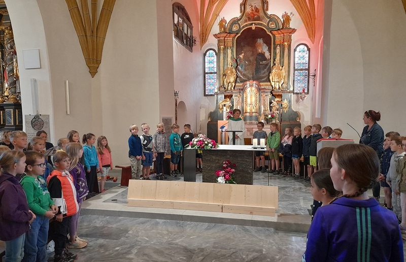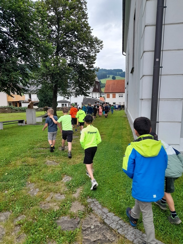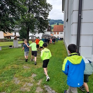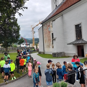 Nach der Fahrradsegnung (rund um die Kirche) fuhren/ gingen die SchülerInnen einen Ausflug. "Gott fährt/geht stets mit, seid gesegnet".