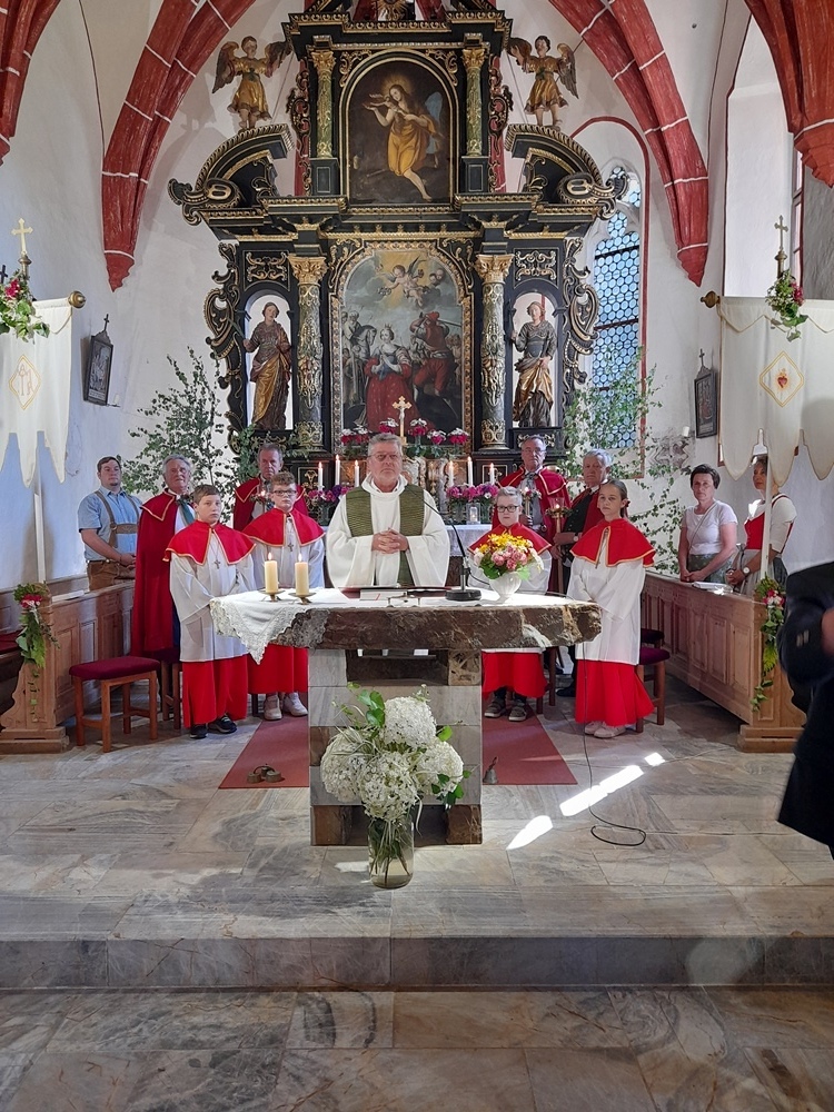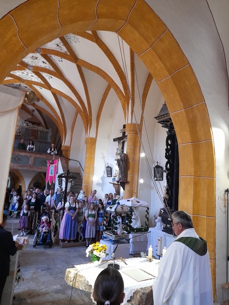 Ein Festtag ist alle Jahre wieder der Kathaler Sonntag. Er wurde heute in der wunderschön geschmückten Kirche mit vielen Gläubigen von Kanonikus Johann Feischl gefeiert.