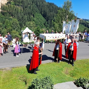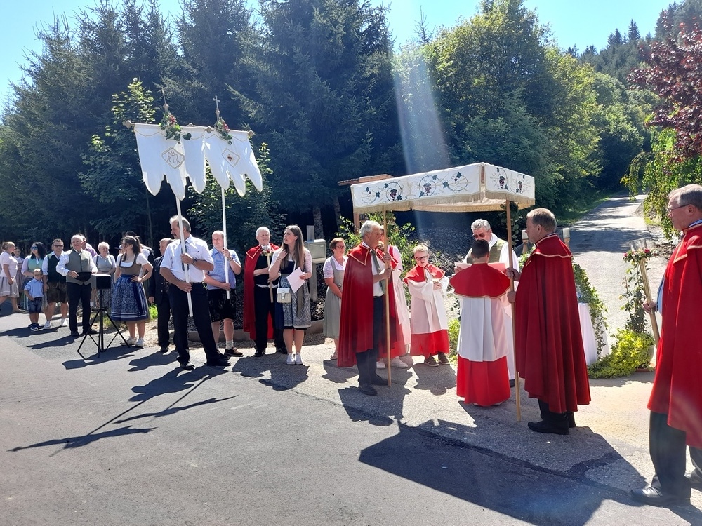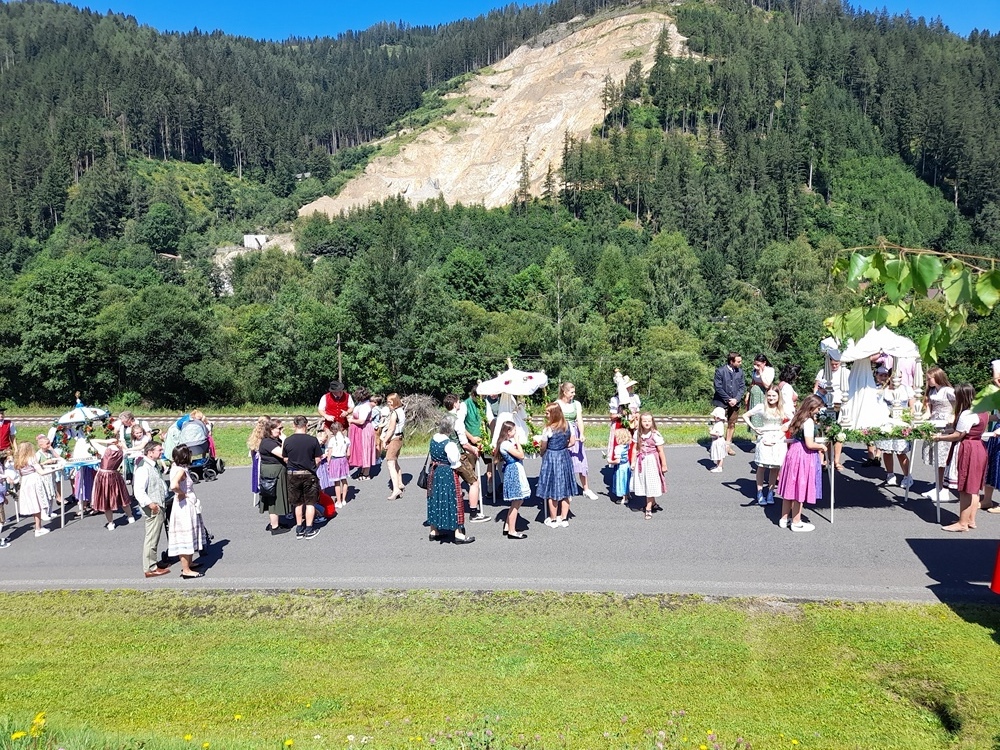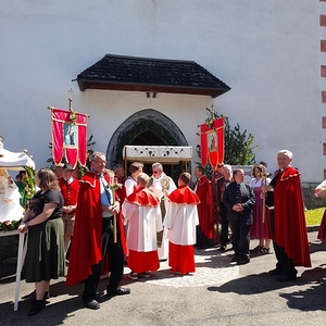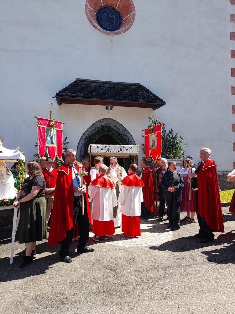 Im Anschluss wurde das Allerheiligste zu vier Evangelienstationen in die „Gegend“ von Kathal zu vorbereiteten Altären getragen. Flankiert von drei Frauenbildern, die auch als Altäre zur Verfügung standen. Der Musikverein Obdach gestaltete den Festgottesdienst und auch die Prozession mit ihren wunderbaren Klängen. Zum Frühschoppen bzw. Fest lud anschließend der „Verein zur Erhaltung der Kathaler Kirche“ ins Zelt ein. Ein herzliches Vergelt´s Gott allen fleißigen Händen, die zum Gelingen dieses Festes beigetragen haben.