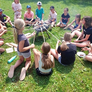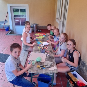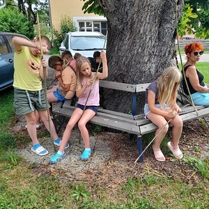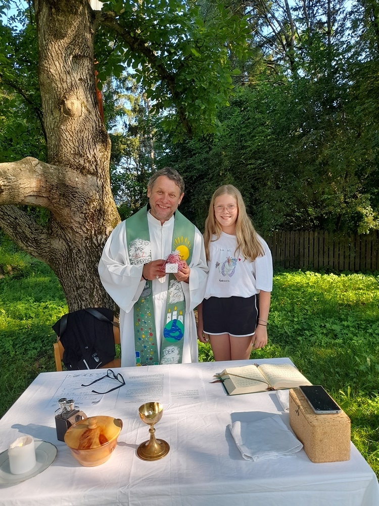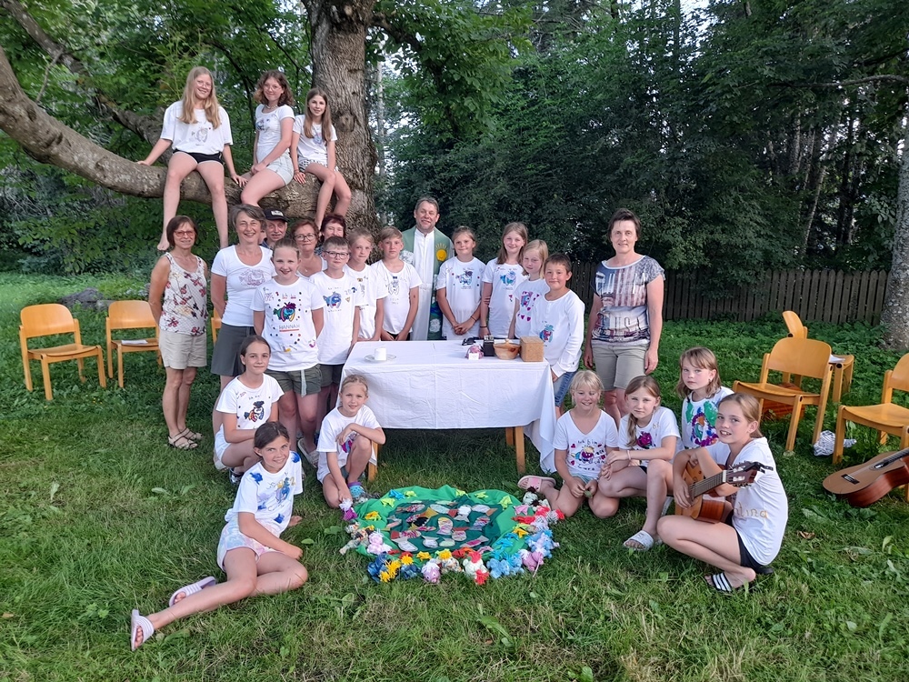 Am Abend kam der Pfarrer mit Eis im Gepäck. Er feierte mit uns den Lagergottesdienst, einige Menschen aus der Nachbarschaft feierten gleich mit. Gemeinsame Jause unter den Bäumen und ein Abendspaziergang rundete den Tag ab. Spiel und Spaß ohne Handy und Fernsehen funktioniert sehr gut.