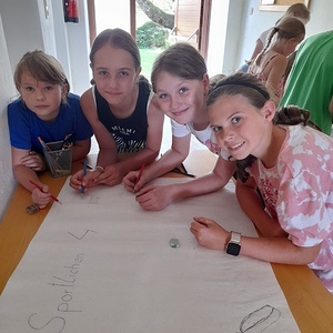 Nach der Gruppeneinteilung fertigte jede Gruppe ein Plakat an und suchte sich einen Gruppennamen dazu. Verschiedenen Gruppenaufgaben gilt es in den kommenden Tagen zu erledigen. auch Küchendienst war dabei.
