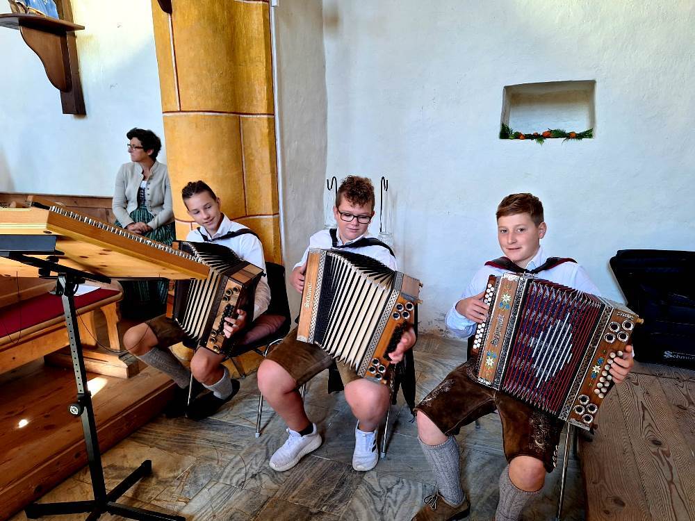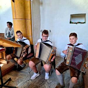 Die "Kathaler Buam" gestalten musikalisch den von Pfarrer Mag. Heimo Schäfmann zelebrierten Dankgottesdienst.
