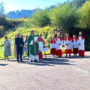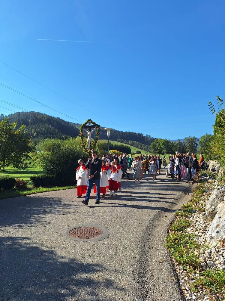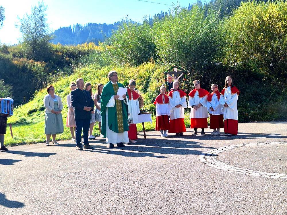Bei strahlendem Sonnenschein wurde in Kathal heute das Erntedankfest mit Beginn der Segnung der Erntekrone am Platz oberhalb der Kirche begonnen.