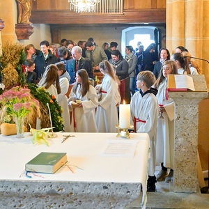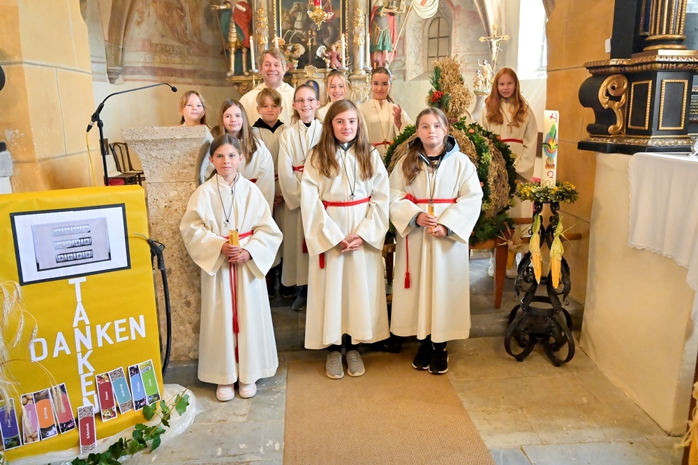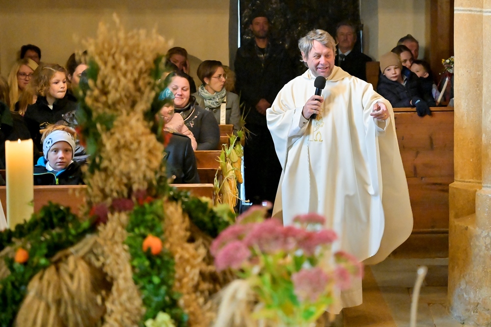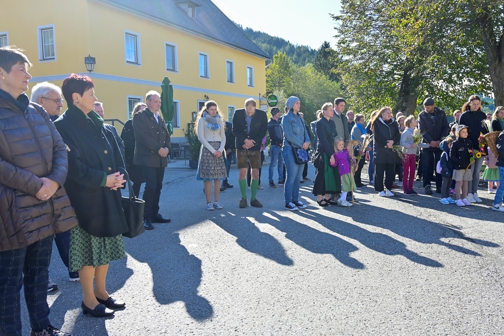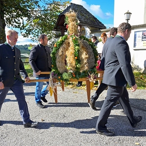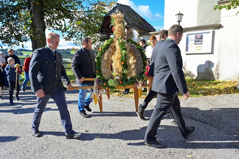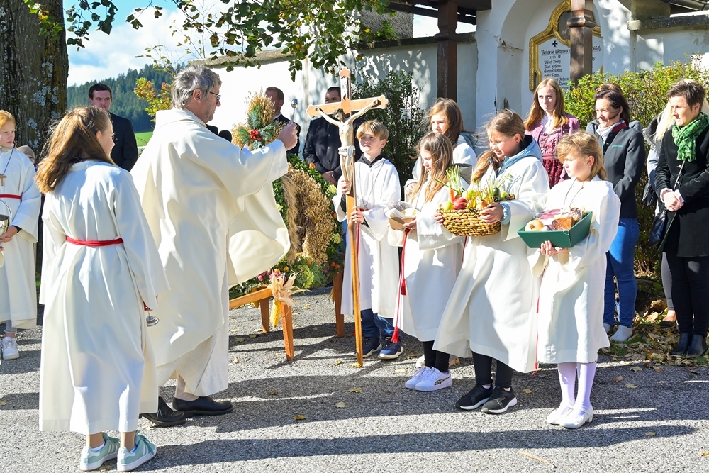 Heute wurde auch in St. Georgen Erntedank gefeiert. Bei etwas windigem Wetter fanden sich dennoch viele Dankende zum gemeinsamen Kirchgang ein.