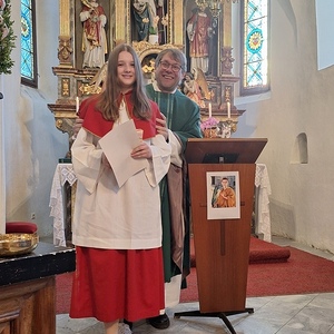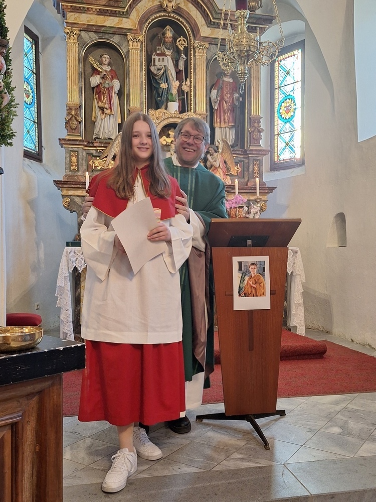 Pfarrer Mag. Heimo Schäfmann konnte gemeinsam mit Minibegleiterin Monika Pletz, Lorenz Glatz als neuen Mini in der Gemeinschaft begrüßen.