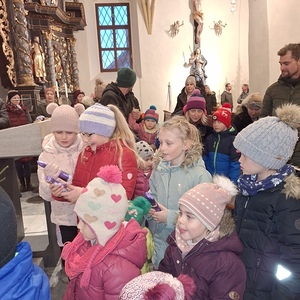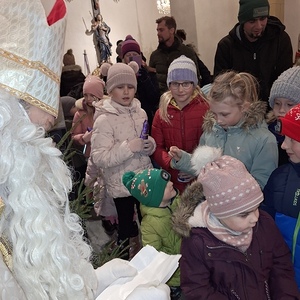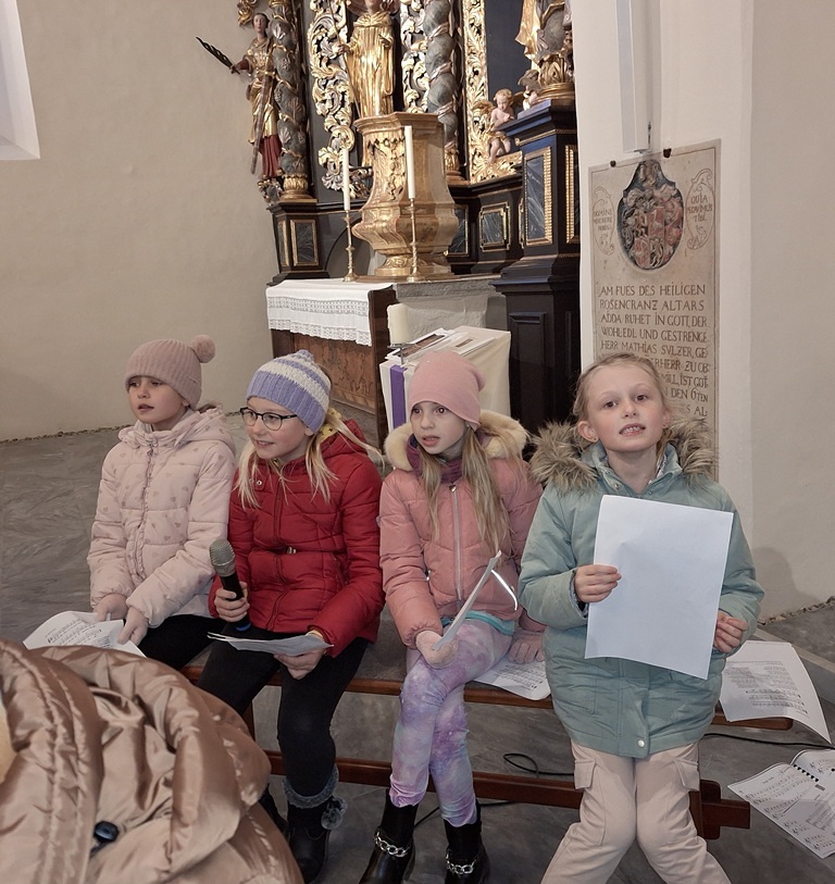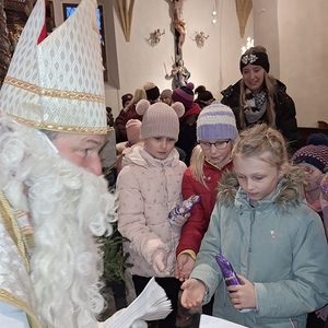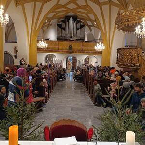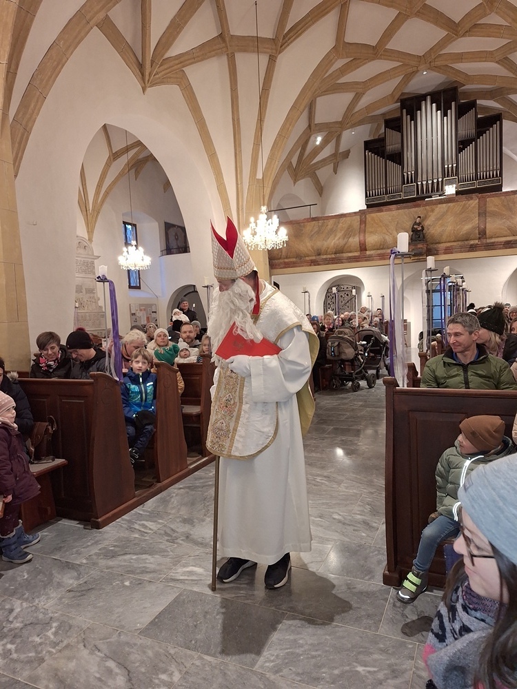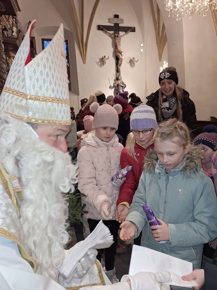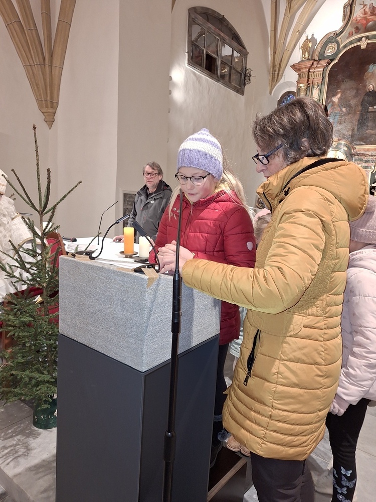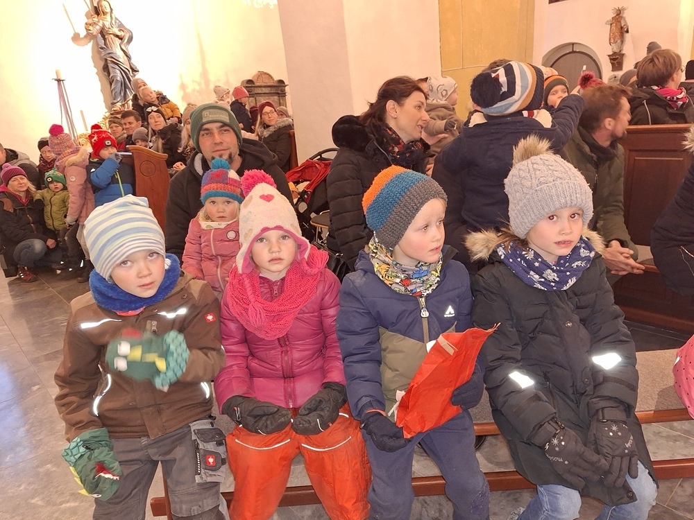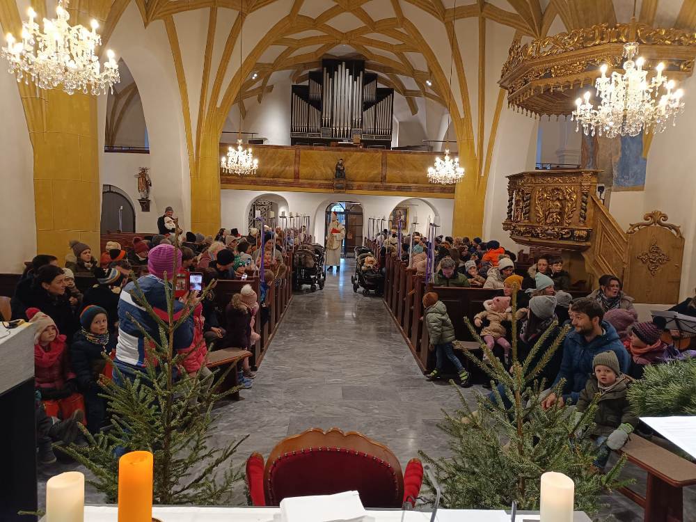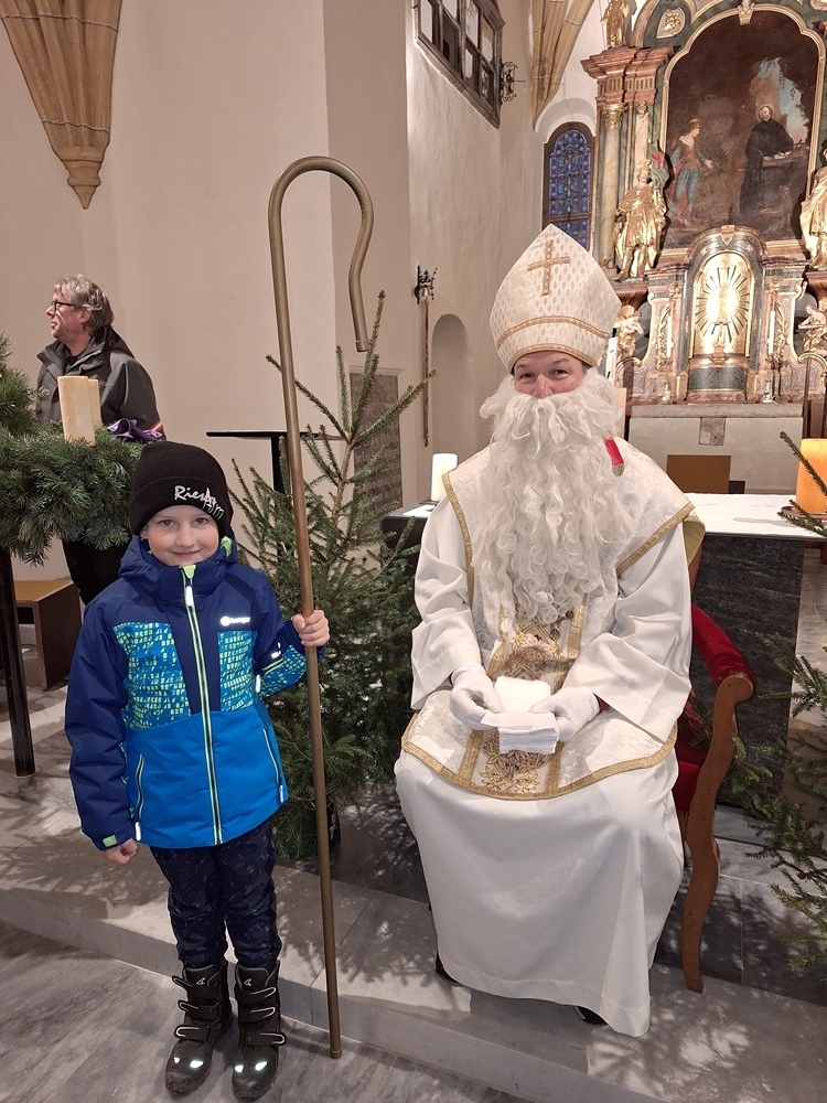 Viele Kinder kamen mit ihren Eltern und Großeltern der Einladung zur Nikolausfeier nach und durften in einem Rollenspiel, Liedern und Gedichten das Leben dieses Lichtheiligen erfahren.