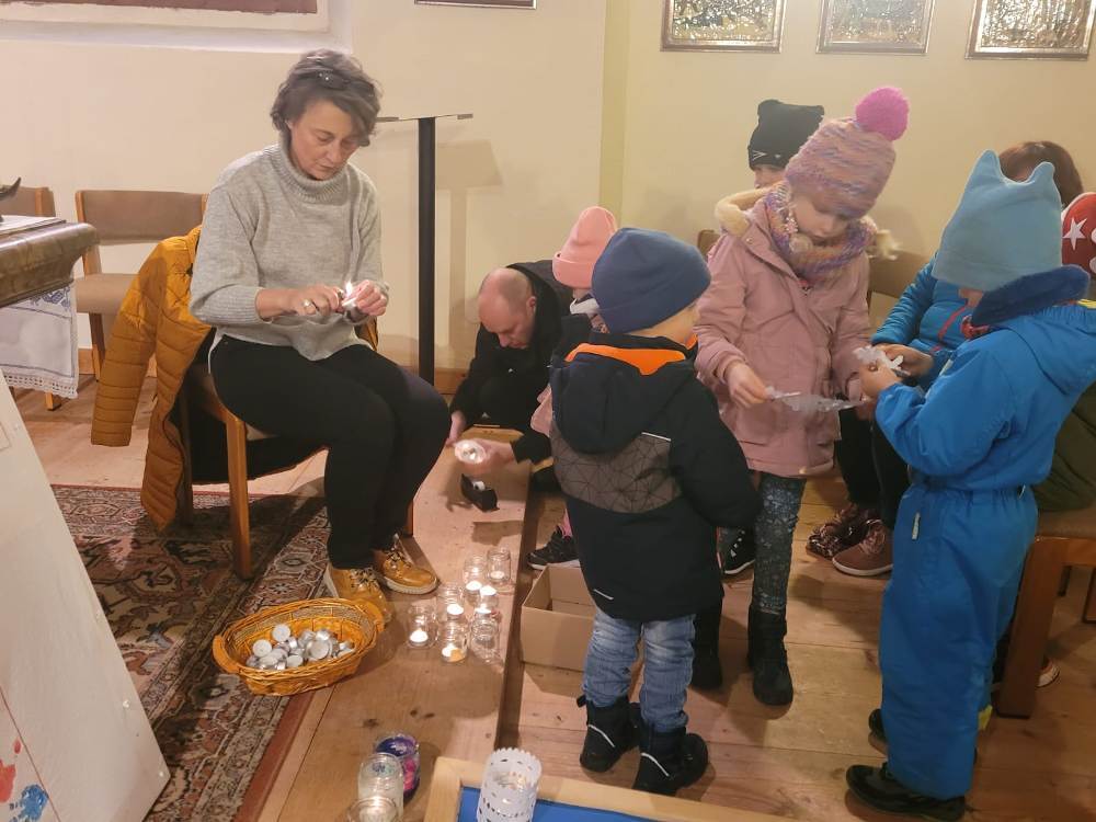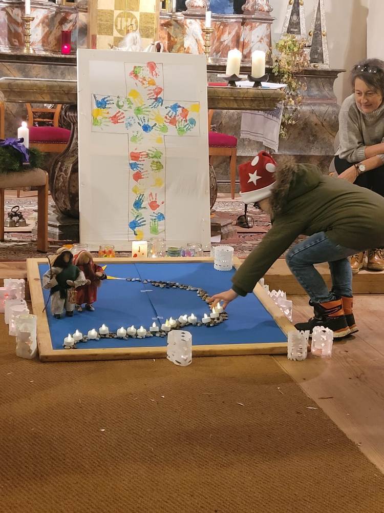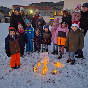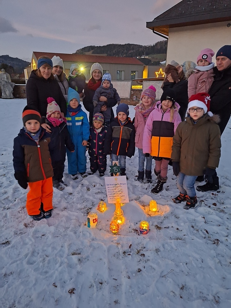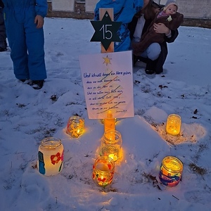 Den Abschlusssegen gab es anschließend am Adventkalenderweg, der rund um die Kirche sich erhellt und ebenfalls von den KLEKI GD BesucherInnen gestaltet wurde.
