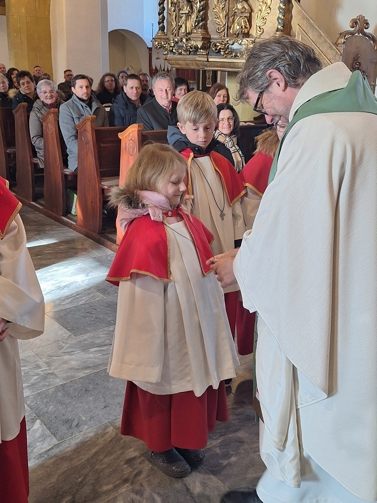 09.02.2025 Pfarrer Mag. Heimo Schäfmann berüßte neue Ministrantin.