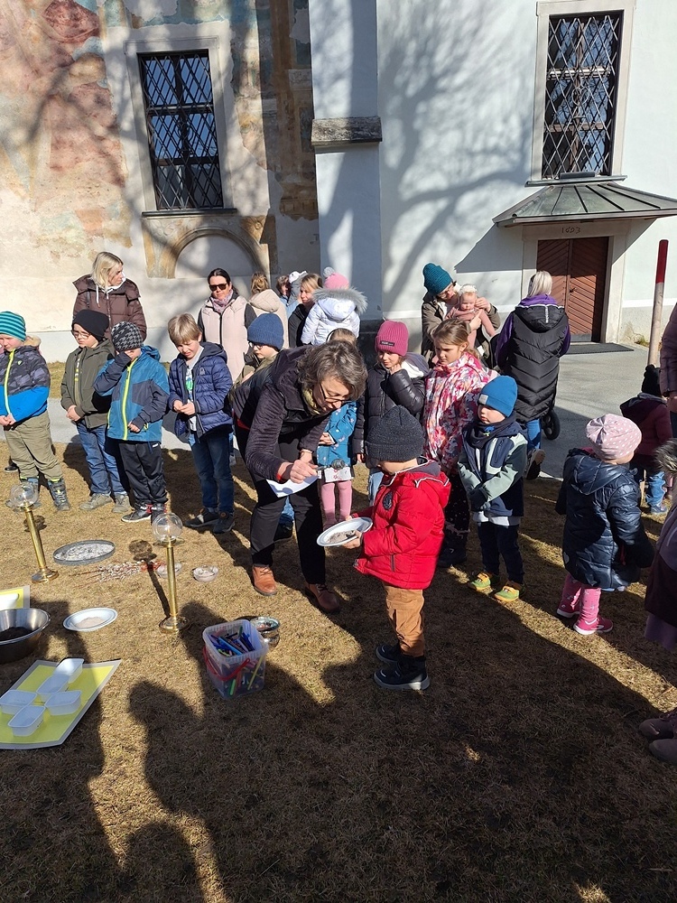 Diese wurde anschließend beim Gottesdienst von Pfarrer Mag. Heimo Schäfmann gesegnet und weiters zu einem "Aschenkreuz to go" verarbeitet.