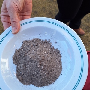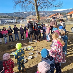Auch Asche als Dünger durften die Kinder kennenlernen und dafür Erde und Samen in Topfenbecher säen.
