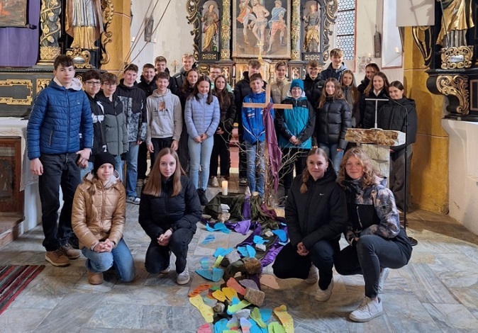 🦶...bei einem Kreuzweg für Jugendliche mit Gedanken zur heutigen Zeit, wetterbedingt in der Obdacher Pfarrkirche,
