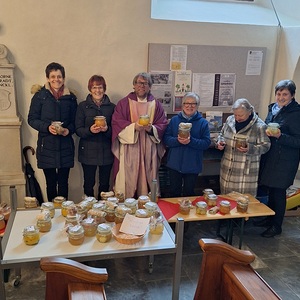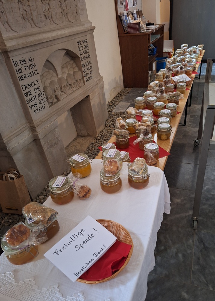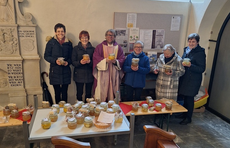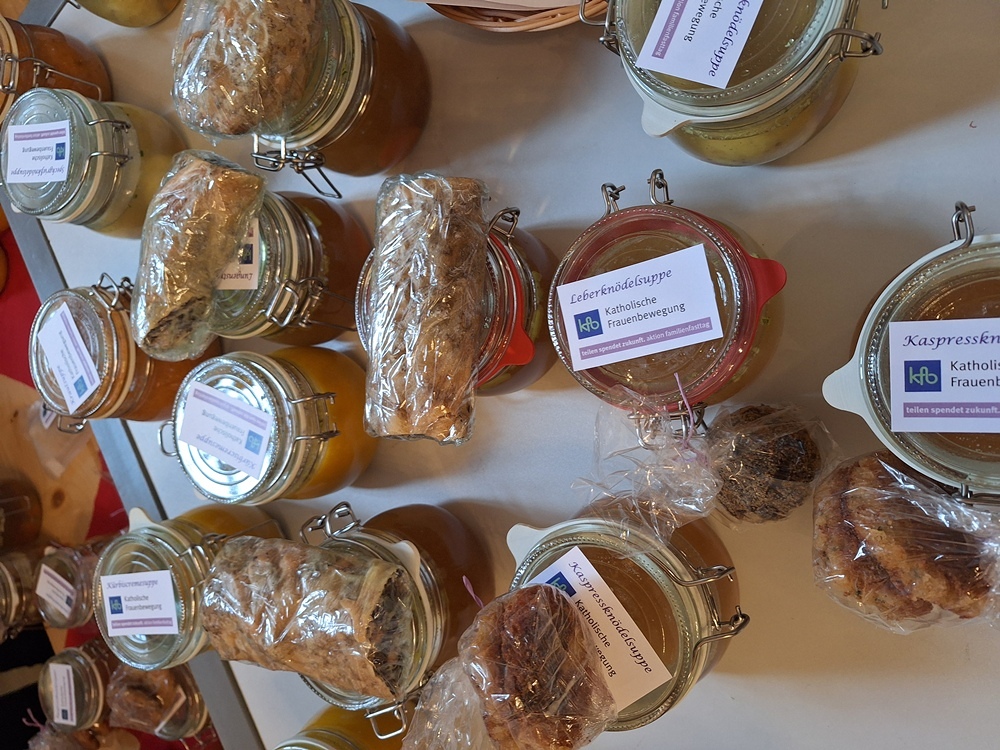 Sieben verschiedene köstliche Suppen - abgefüllt in Gläser und liebevoll dekoriert - wurden am Sonntag nach der Messe in der Pfarrkirche Obdach den Gottesdienstbesuchern zum Mitnehmen angeboten.