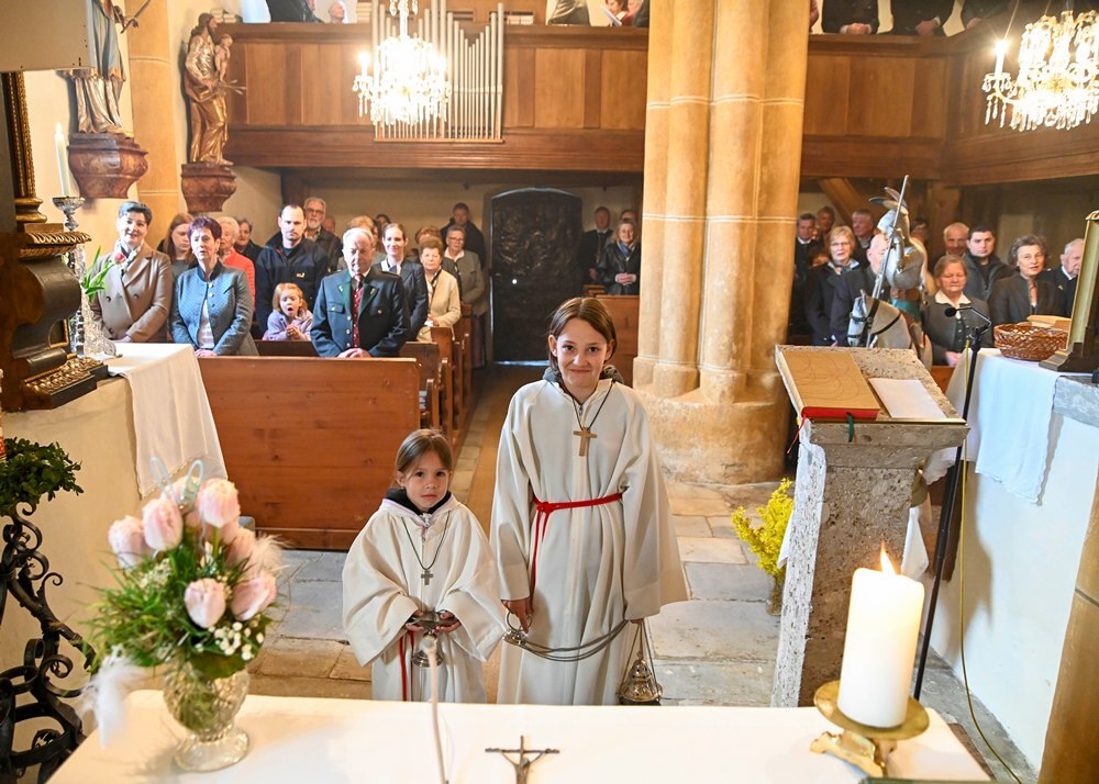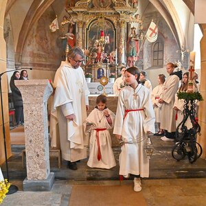 Der Kirchenchor St. Georgen gestaltete den feierlichen Gottesdienst mit wunderbarem Gesang. Nach der heiligen Messe lud der Pfarrgemeinderat zur Agape, wo viele Neuigkeiten ausgetauscht wurden. Danke der Schützen wusste jeder in St. Georgen, dass es 12 Uhr geschlagen hat, den mit ihren ohrenbetäubenden Schüssen, konnte das keiner überhören. Harald und sein Frau Margret verwöhnten die Gäste beim Kappler den ganzen Tag mit Speis und Trank, wobei sie von flotten Volksmusik klängen unterhalten wurden. Auch die Kinder kamen auf ihre Kosten, ob beim Basteln, Fußball Spielen oder in der Hüpfburg, für Unterhaltung wurde gesorgt.